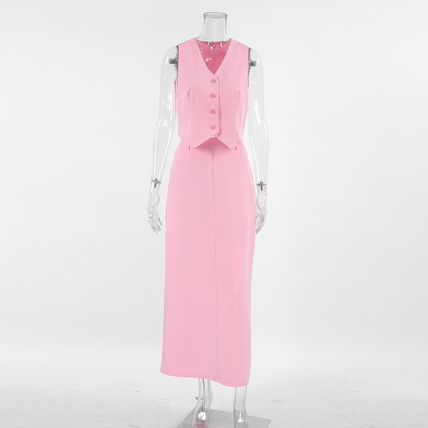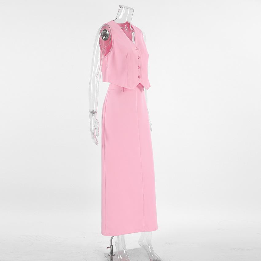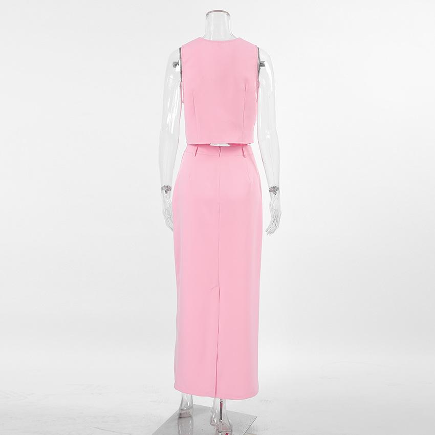 Traje informal de moda estilo francés, chaleco sexy sin mangas, top corto con abertura en la cintura, falda de dos piezas, conjunto de ropa de otoño para mujer