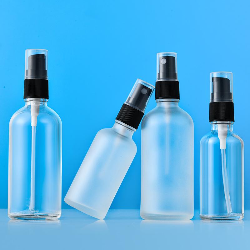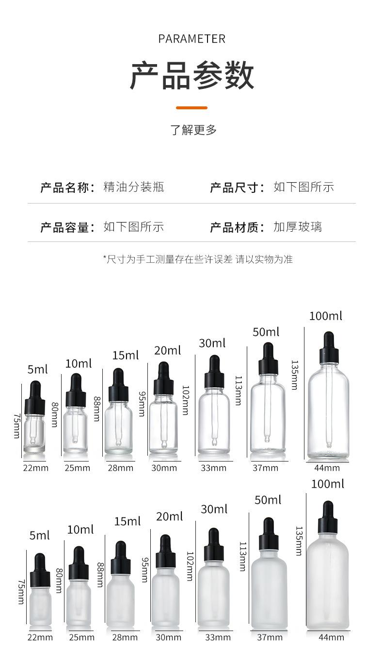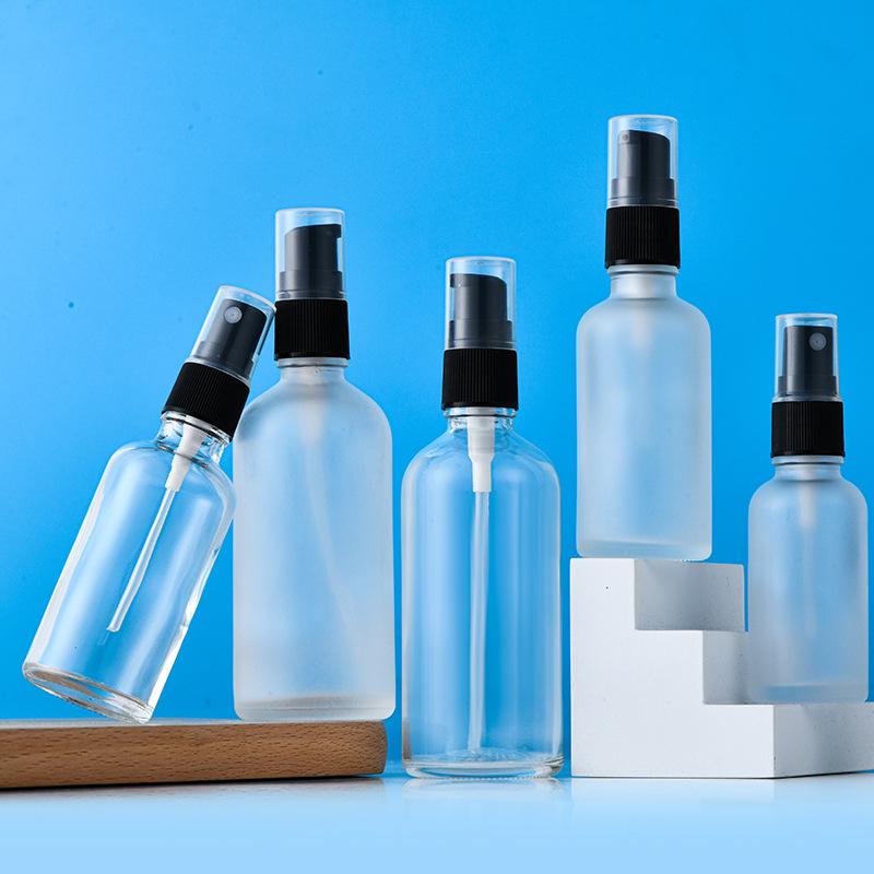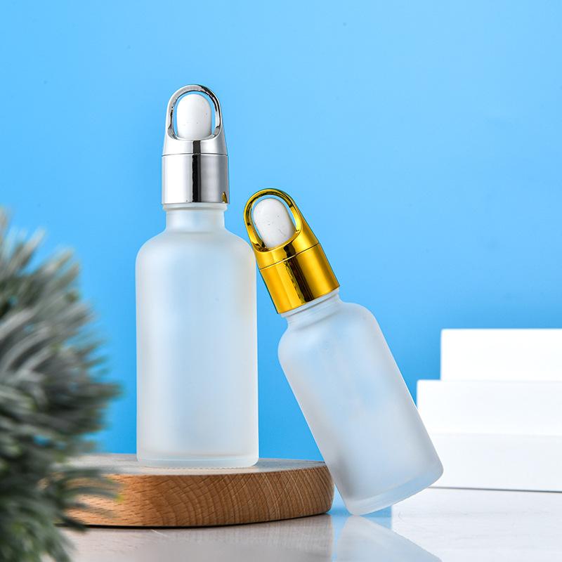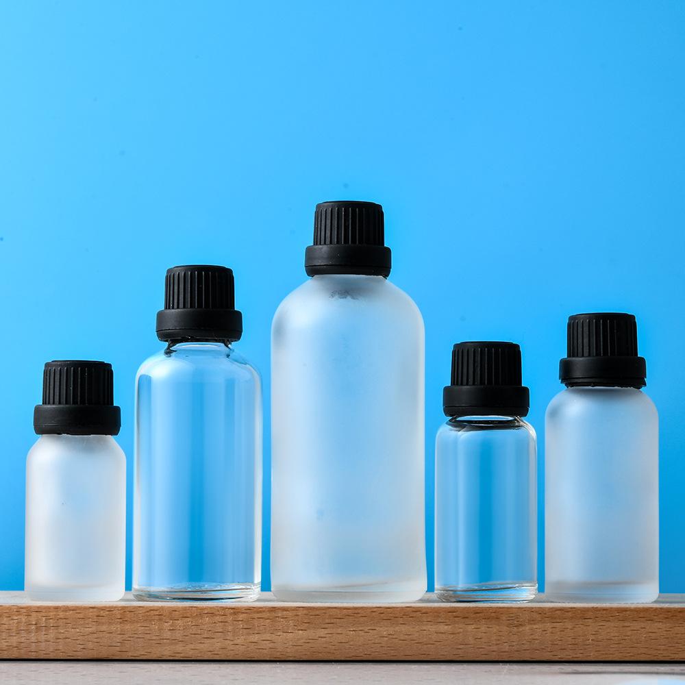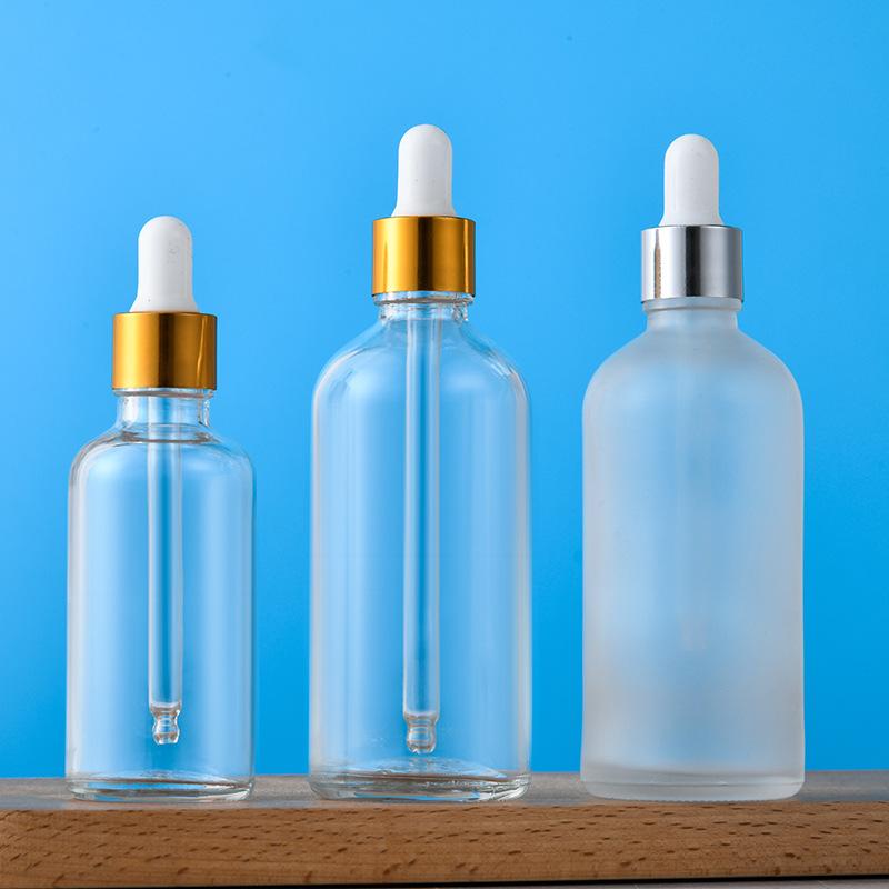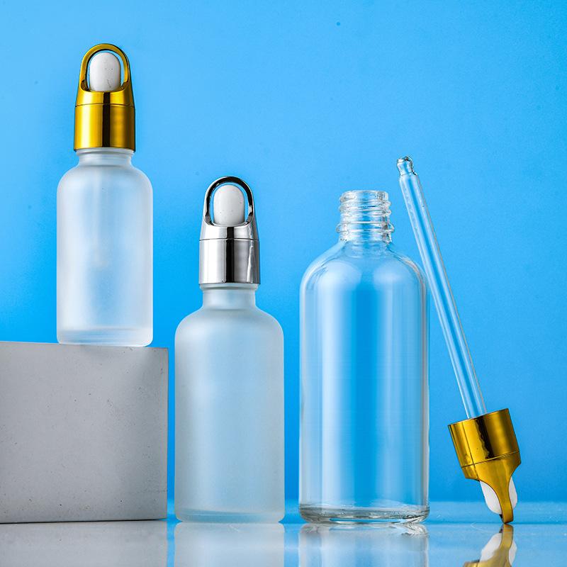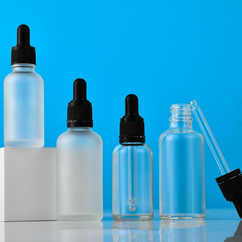 Botella de plástico con gotero para cosméticos, botella de aceite esencial, botella de spray transparente esmerilada, tapa de vidrio grande, venta al por mayor