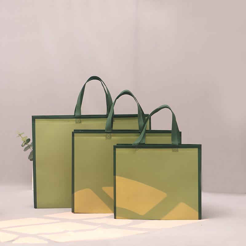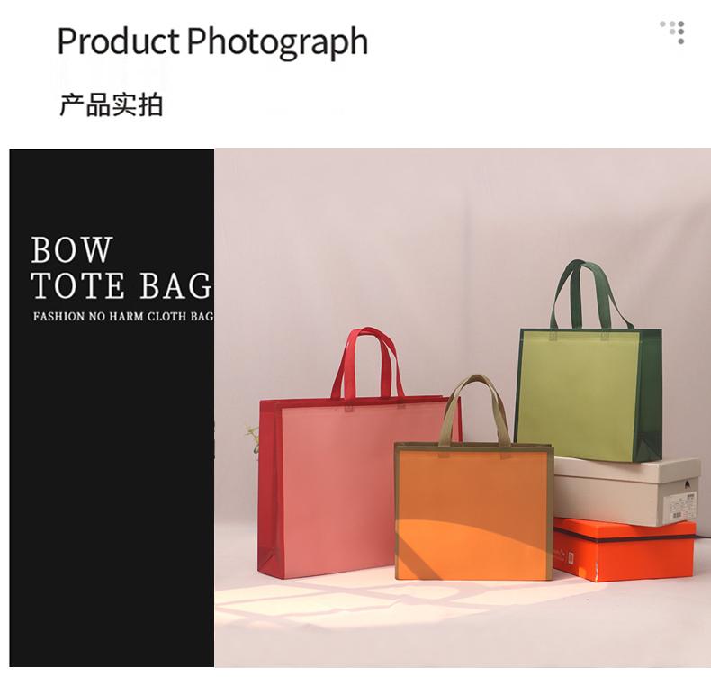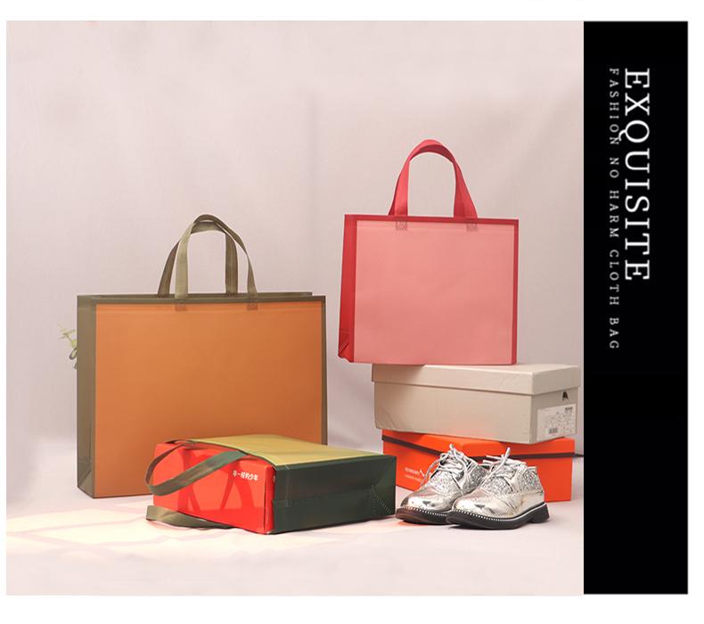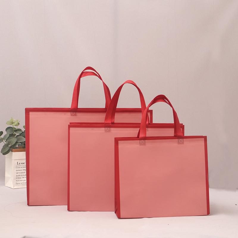 Bolsa no tejida de alta calidad con revestimiento de película impermeable, bolsa de compras de protección ambiental hecha a medida para tienda de ropa de mujer, bolso de mano con logo impreso
