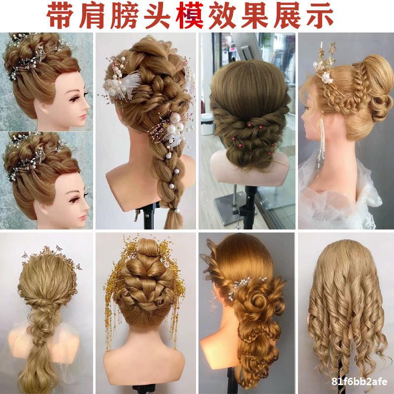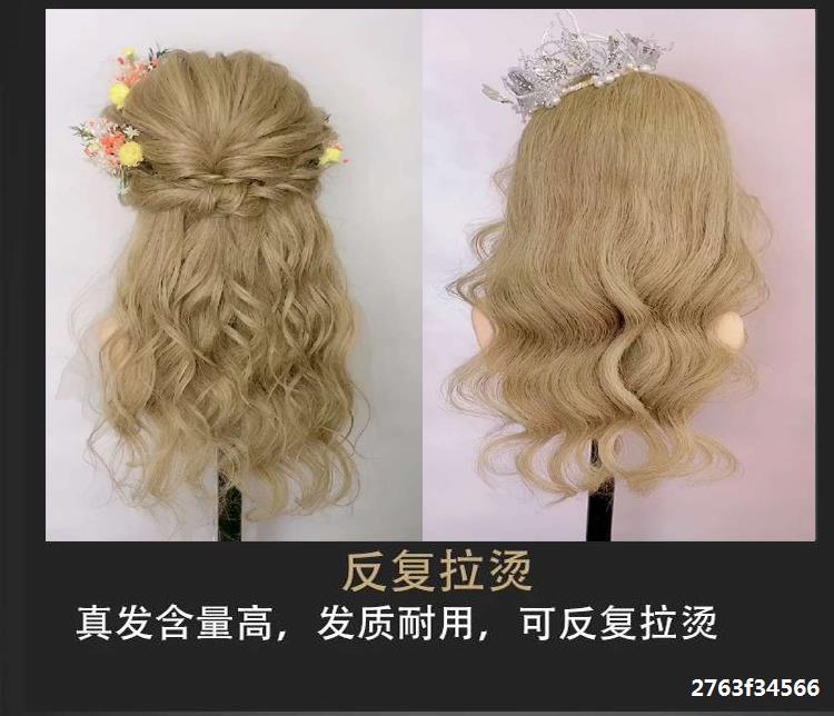 . Peluca de cabeza de maniquí de hombro, modelo de disco de peluquería, cabello humano completo, aprendiz de práctica, modelo de rollo caliente, modelo de cabello real