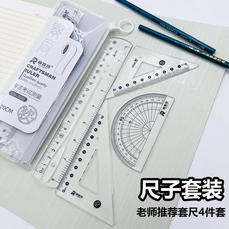 Juego de reglas al por mayor, bonito transportador triangular multifuncional para estudiantes, regla suave de plástico de cuatro piezas.