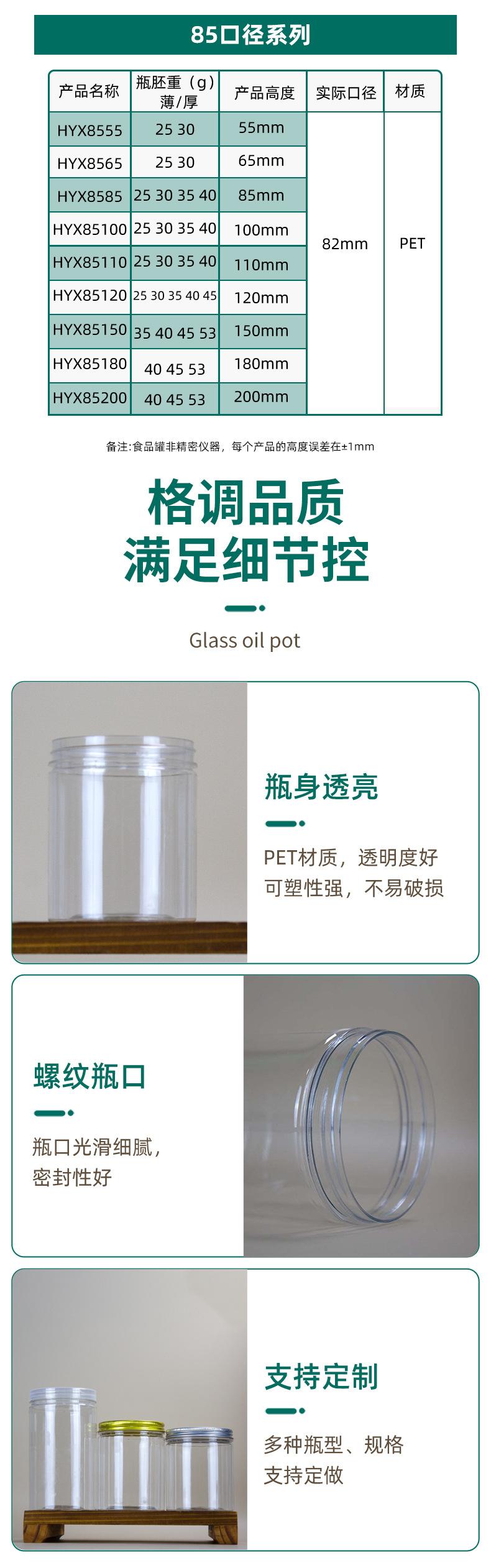 Venta al por Mayor de Fabricante en Stock Redondo 85*200 Tarros de Plástico PET Transparentes Sellados con Tapas de Aluminio para Empaque