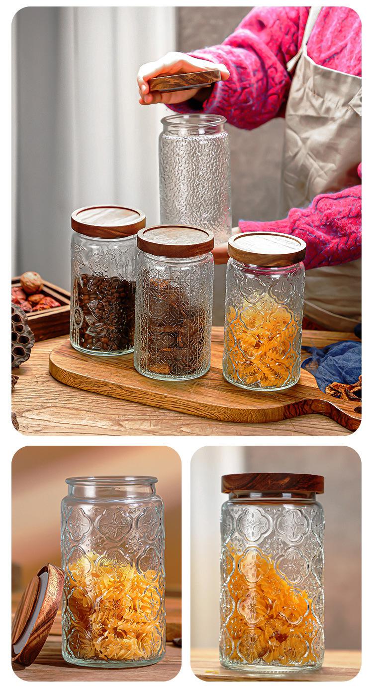1000 ml crabapple acacia wooden lid; transparent, 1000 ml window grilles Acacia wooden cover; transparent, 100...