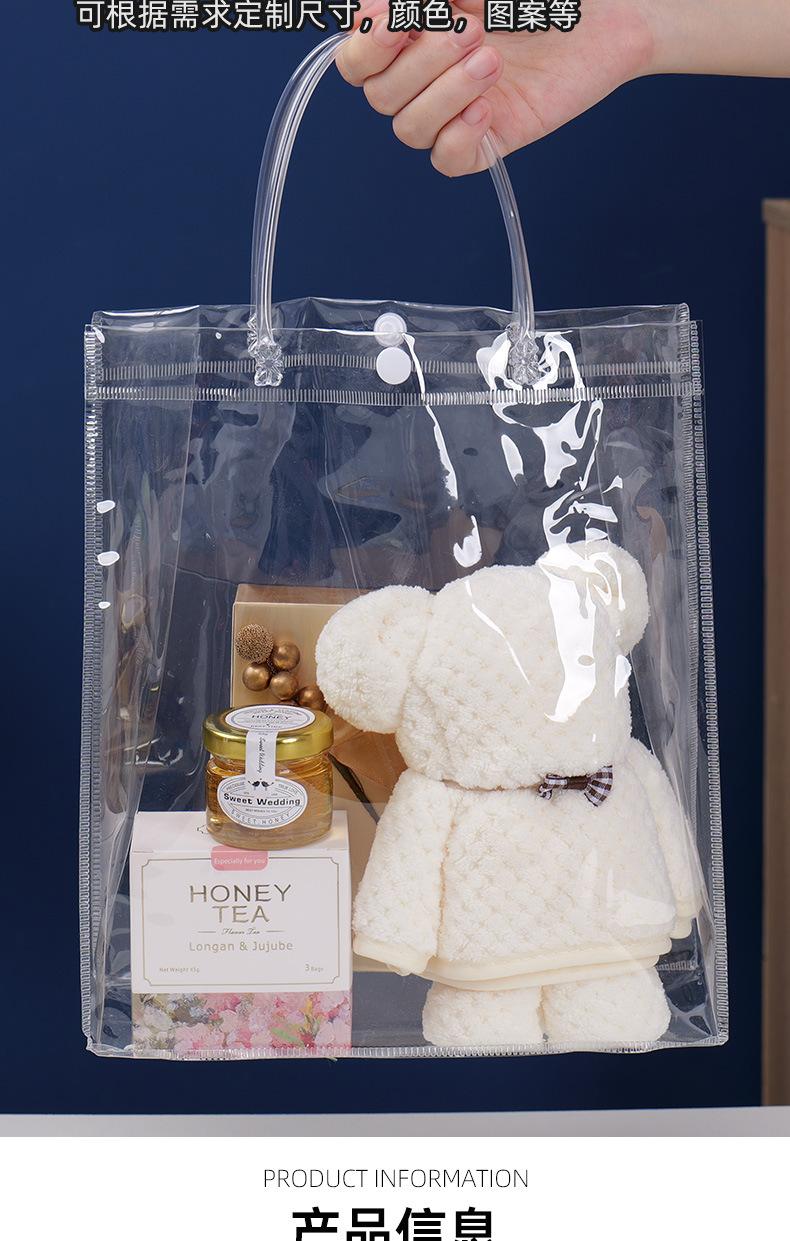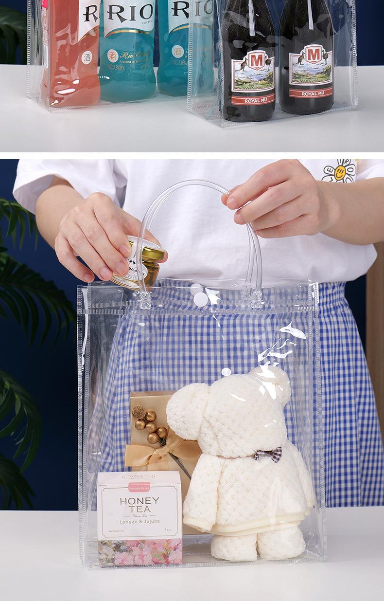 Bolsa de Mano Transparente Plástico Pvc de Alta Gama Pequeña Popular Regalo de Mano Bolsa de Embalaje para Regalo con Logotipo Impreso