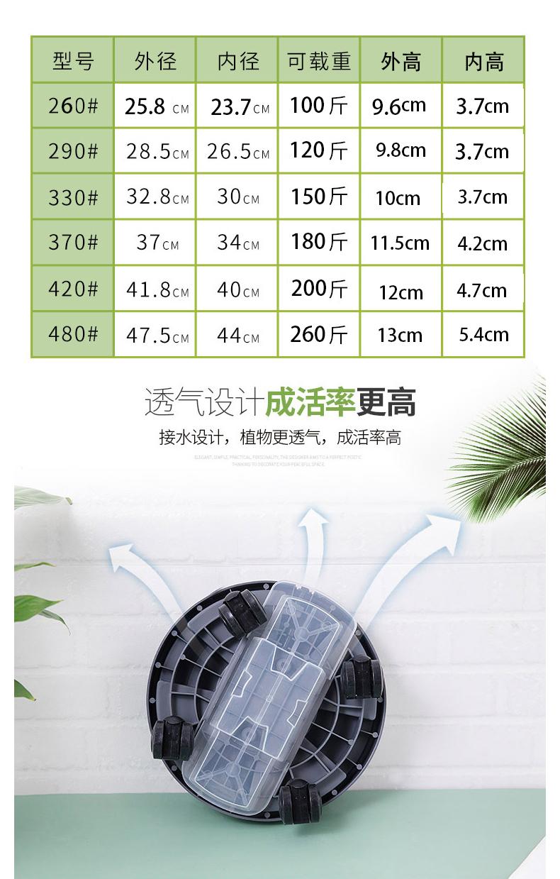 Bandeja móvil para macetas de resina PP de gran capacidad de carga y engrosada con cajón, bandeja receptora de agua y receptáculo universal con ruedas.