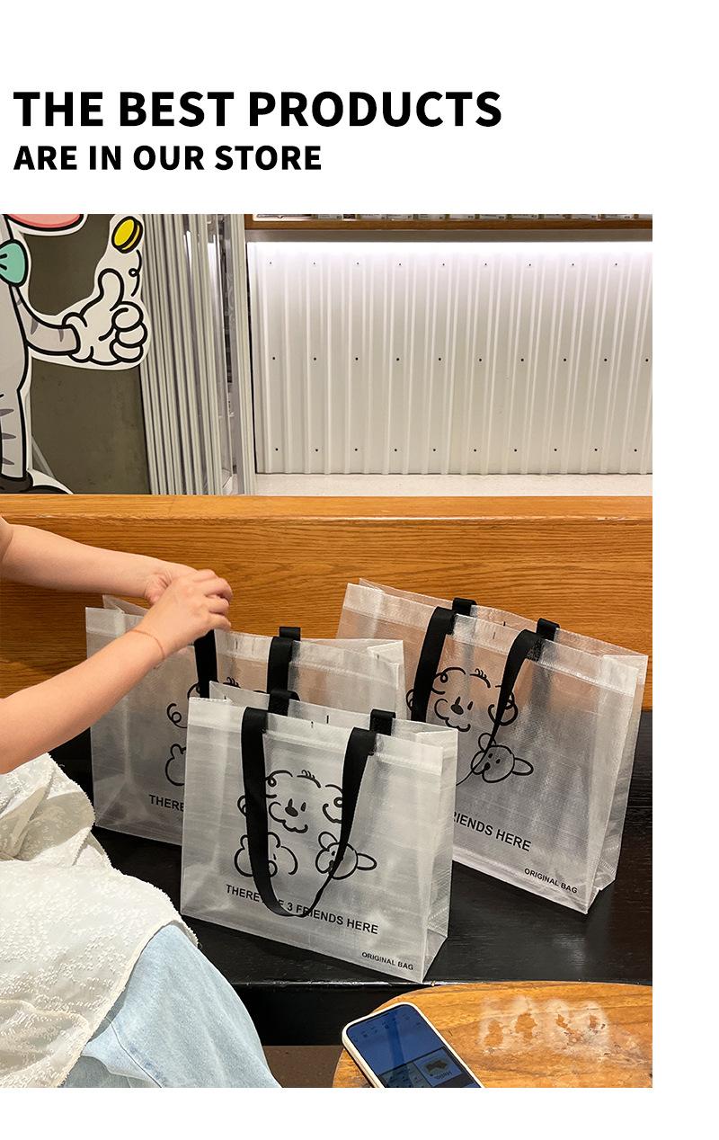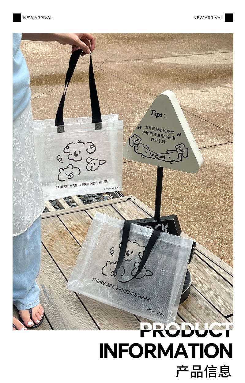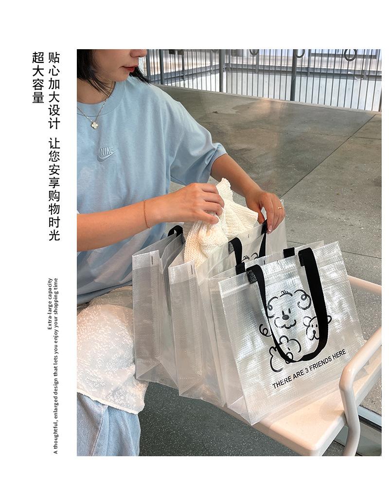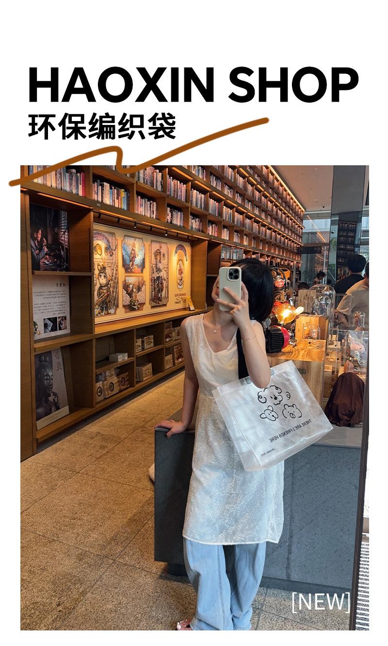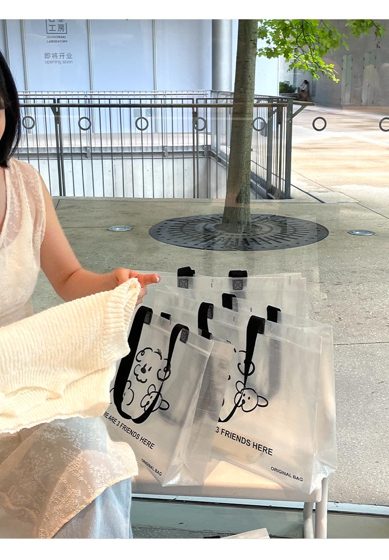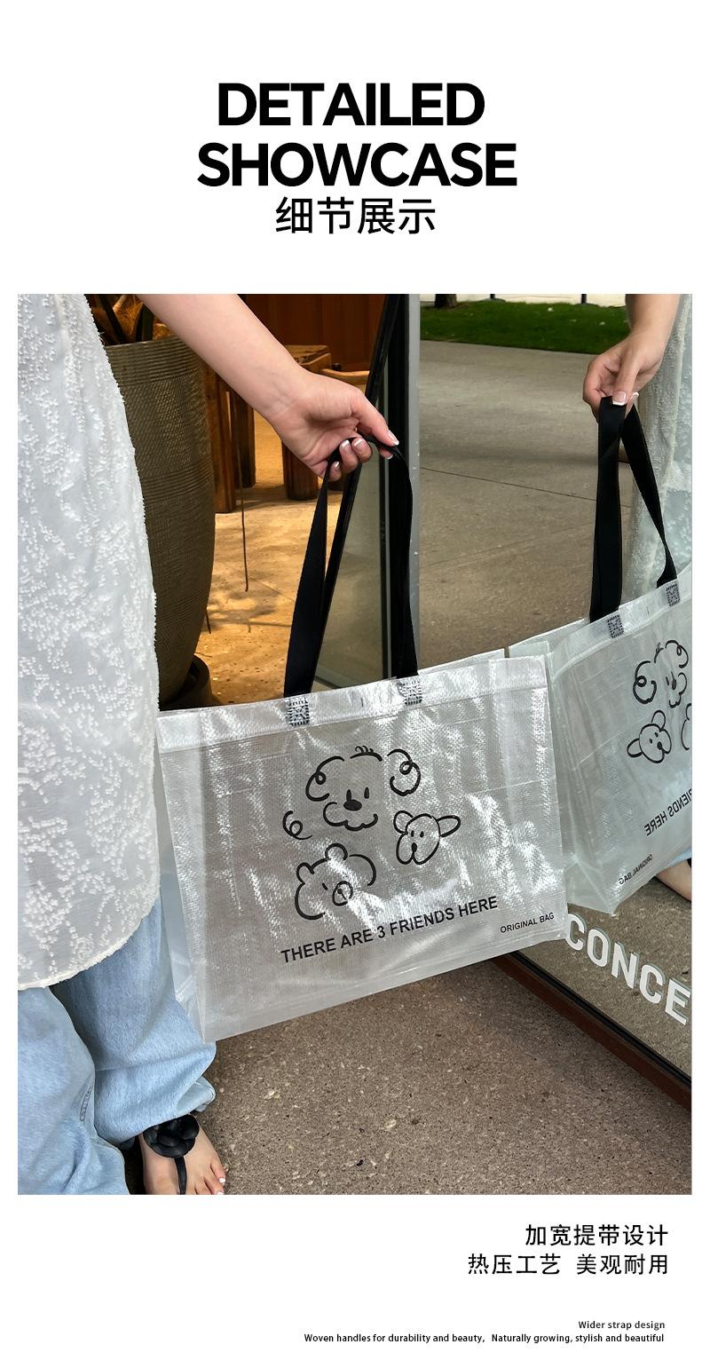 Bolsa tejida transparente de dibujos animados para tienda de ropa, embalaje para compras de ropa con embalaje de regalo para mujer, bolso de mano al por mayor