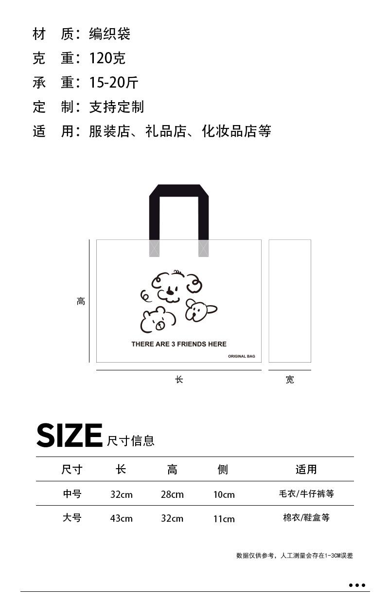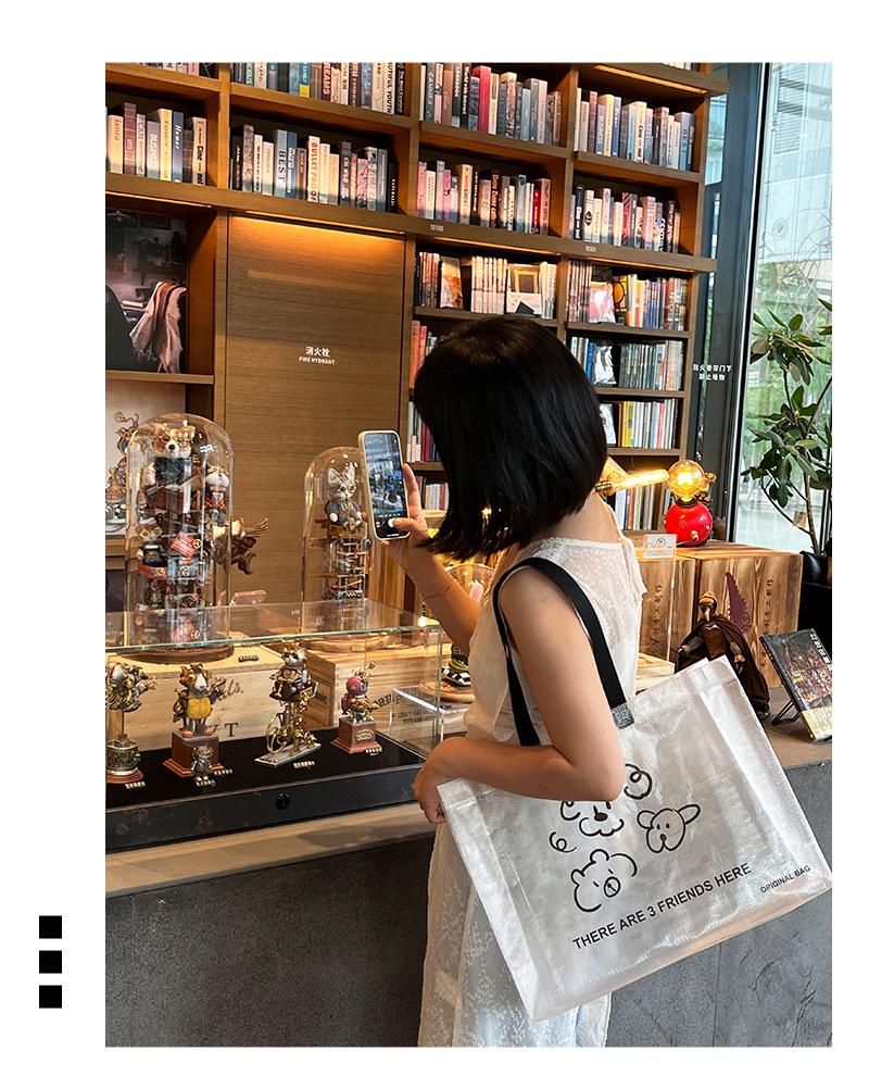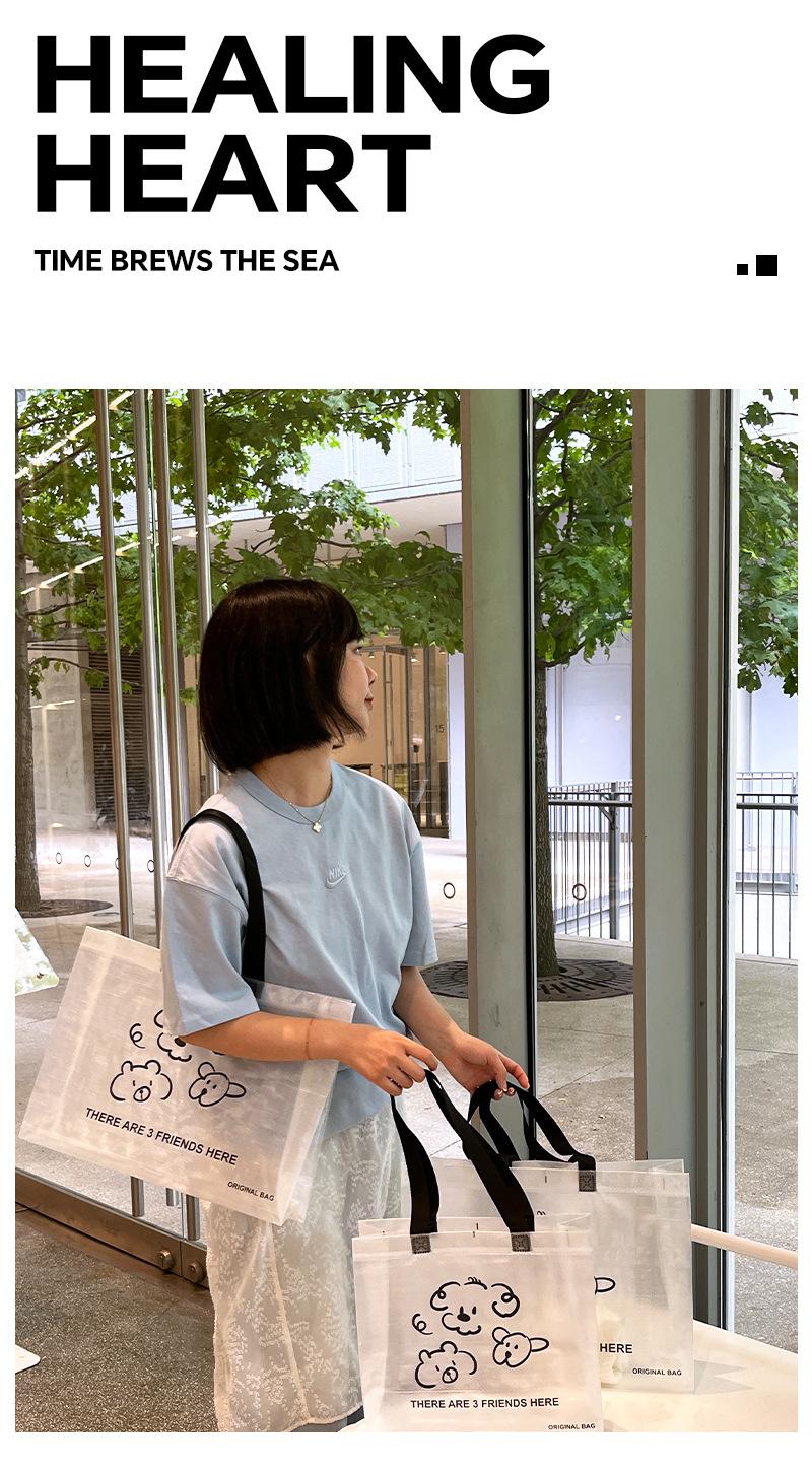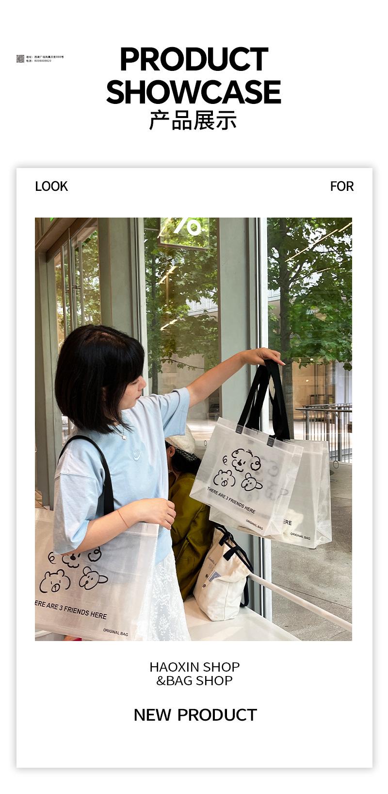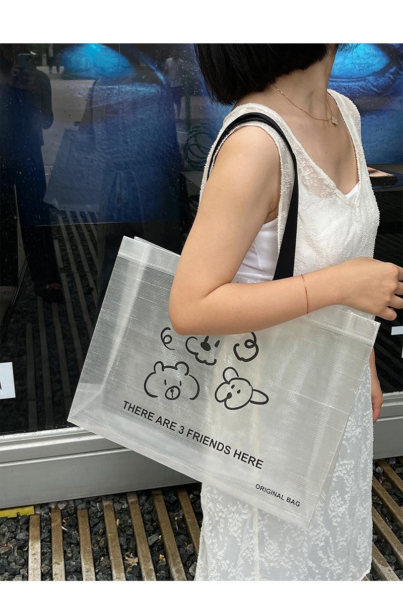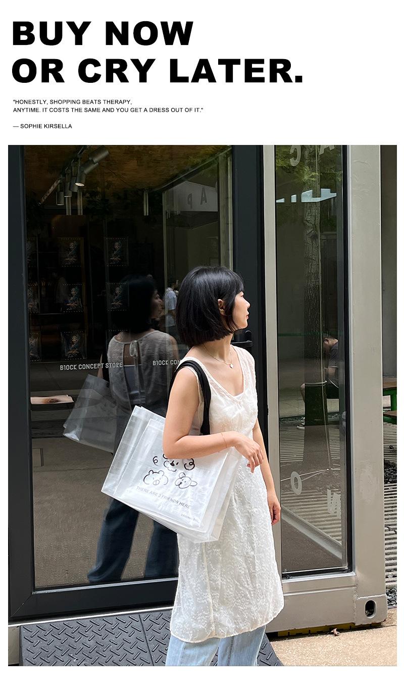 Bolsa tejida transparente de dibujos animados para tienda de ropa, embalaje para compras de ropa con embalaje de regalo para mujer, bolso de mano al por mayor