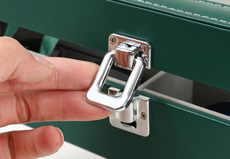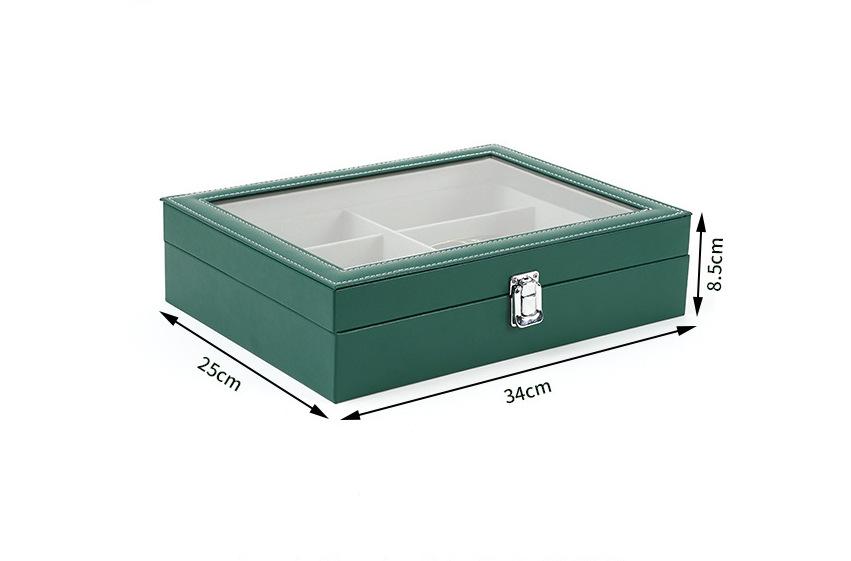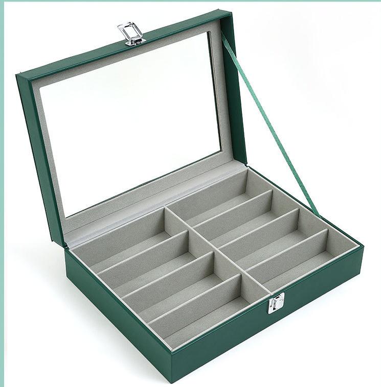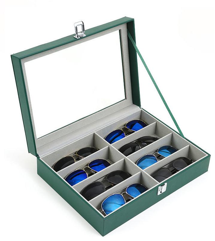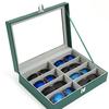 En stock al por mayor nuevo estuche de almacenamiento para gafas de 8 dígitos de PU verde oscuro caja de embalaje a prueba de polvo