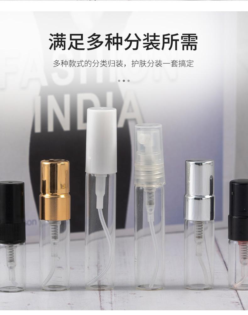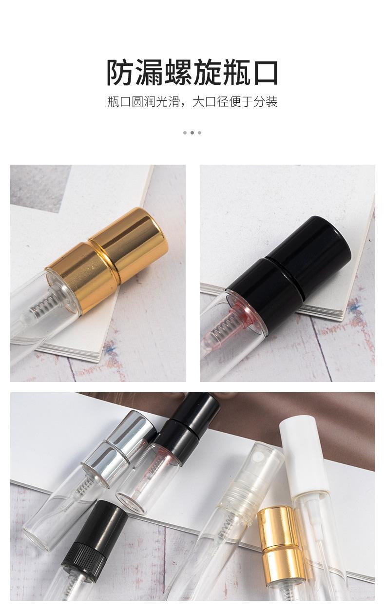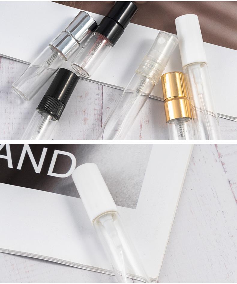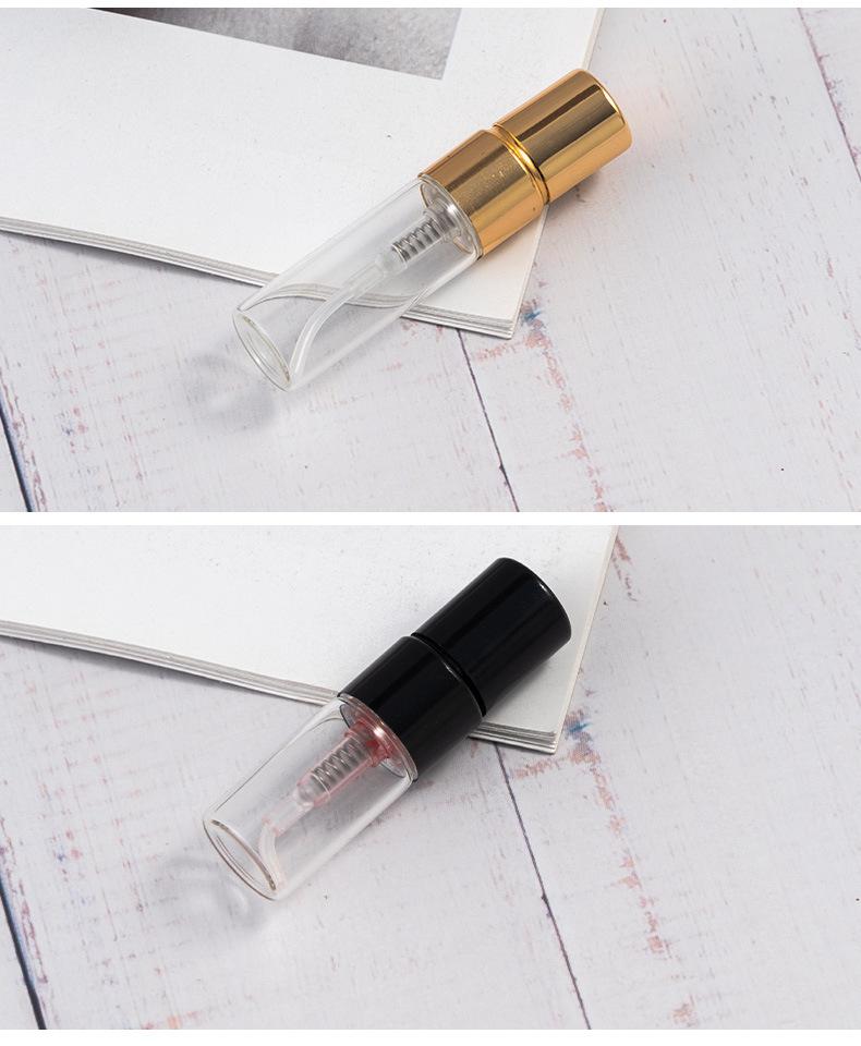 Botella de spray de perfume portátil de pequeña capacidad, botella cosmética de 2/3/5 ml, botella de spray fina de esencia, venta al por mayor