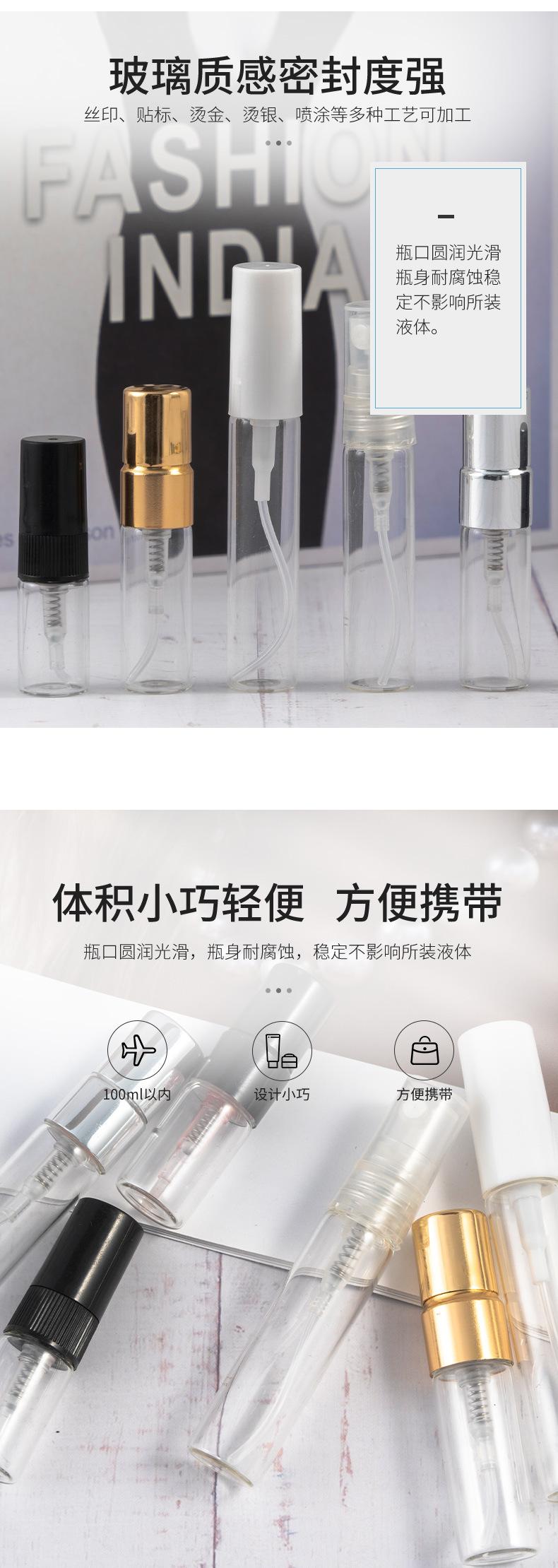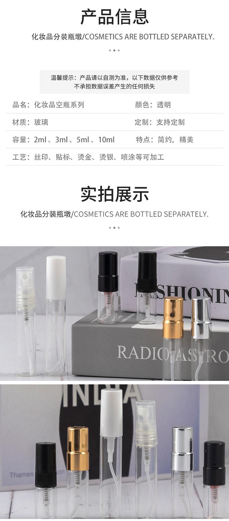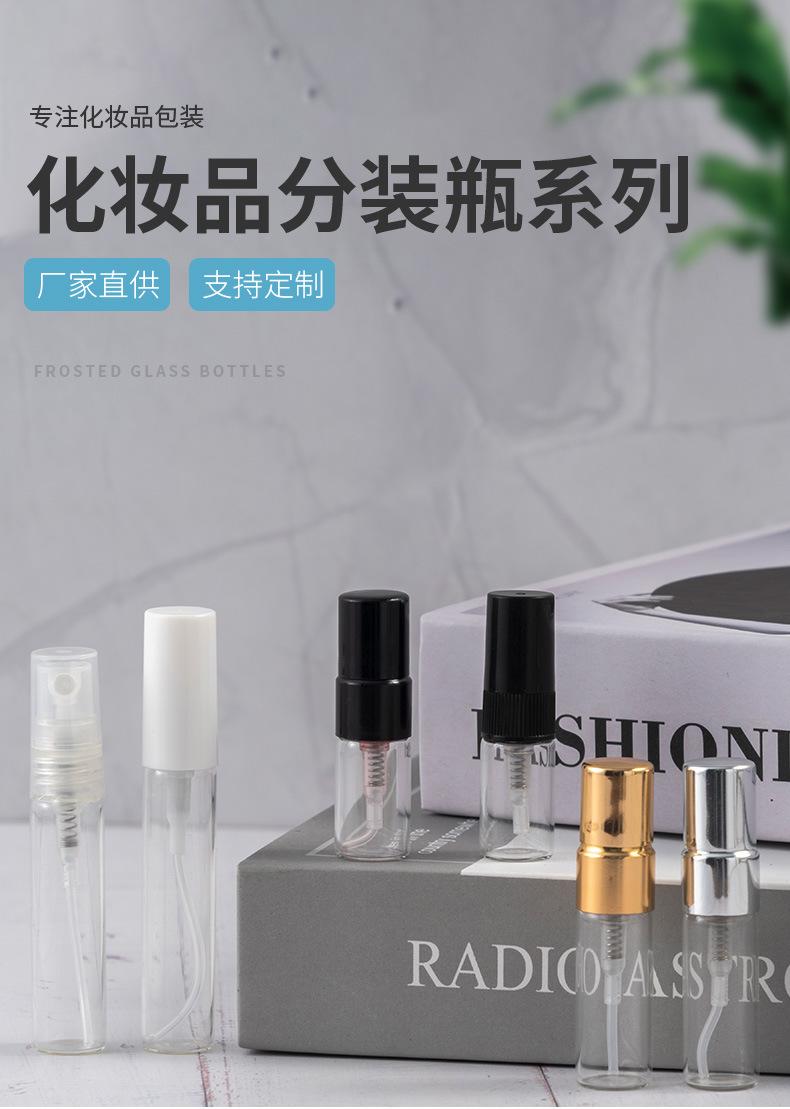 Botella de spray de perfume portátil de pequeña capacidad, botella cosmética de 2/3/5 ml, botella de spray fina de esencia, venta al por mayor