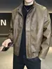 Chaqueta de cuero de motocicleta personalizada de otoño e invierno 2020, nueva chaqueta de cuero con cremallera y bolsillo para hombre, chaqueta de cuero con cuello alto