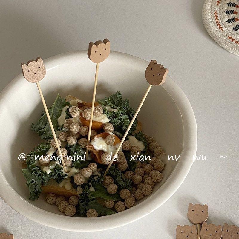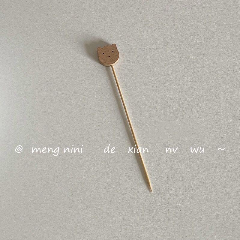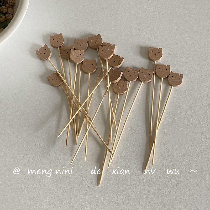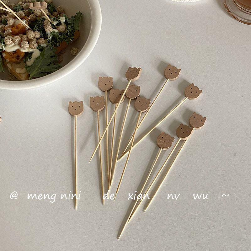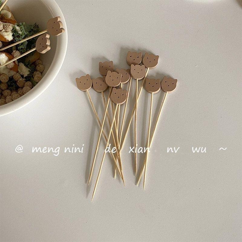 Estaca de Bambú de Oso Estilo Coreano Lindo Bambú Fruta Sab Hogar Comedor Decorativo Fruta Sándwich Palillo de Dientes Tenedor