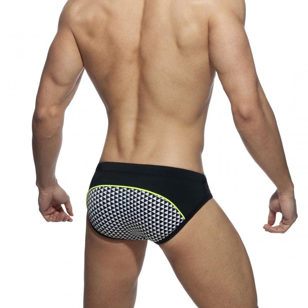 Bañador UXH de estilo europeo y americano con estampado de mosaico, costuras delanteras y traseras y copa triangular, bikini sexy para hombre