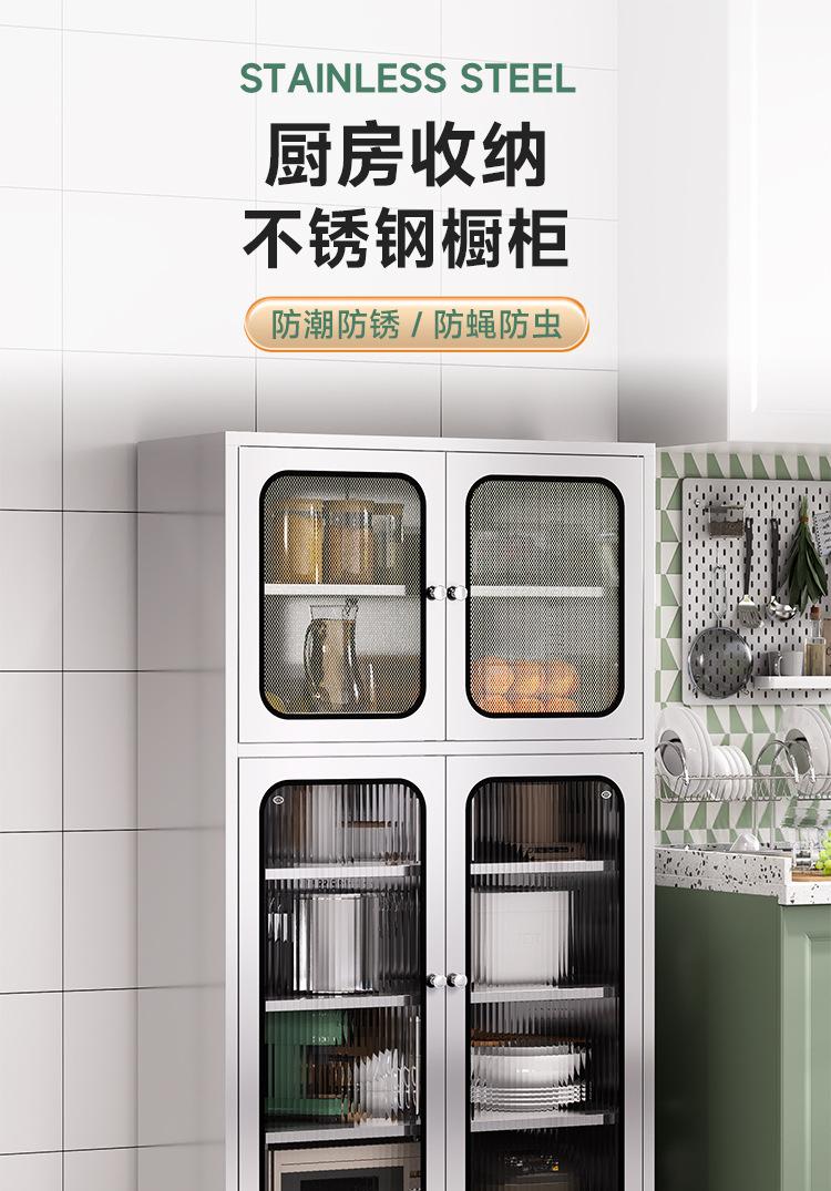 Armario de cocina de acero inoxidable, armario de almacenamiento para ollas, armario de almacenamiento, armario de cocina multifuncional para el hogar, armario de almacenamiento lateral para comedor, armario de almacenamiento, armario de almacenamiento