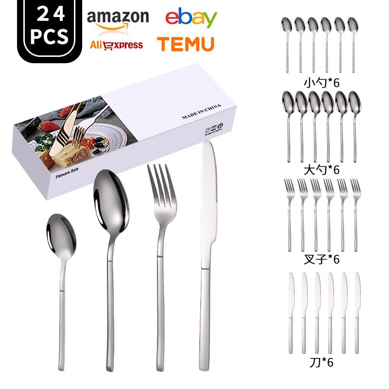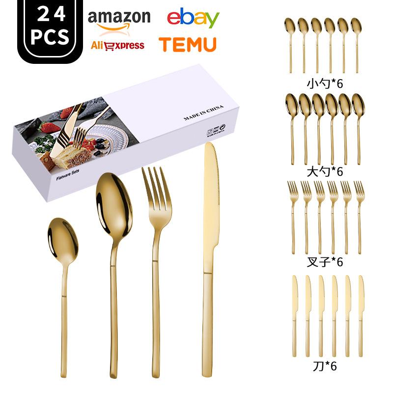 Vajilla de acero inoxidable Amazon Hammer de 24 piezas para comida occidental, cubeta de agua para 6 personas, juego de cuchillo, tenedor y cuchara para carne.