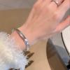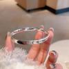 Pulsera Ojo de Gato Sólida Moda Gama Alta Combinable Cepillada Pulsera Abierta Cobre Completo Pulsera Plata Regalo Festival de la Diosa