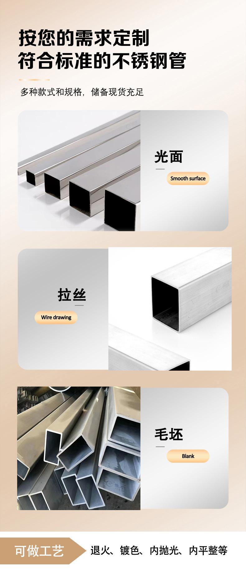 Venta al por mayor transfronteriza Tubo cuadrado de acero inoxidable 304 Tubo cuadrado cepillado 316 Tubo rectangular de acero inoxidable 201 Tubo de acero decorativo Fábrica