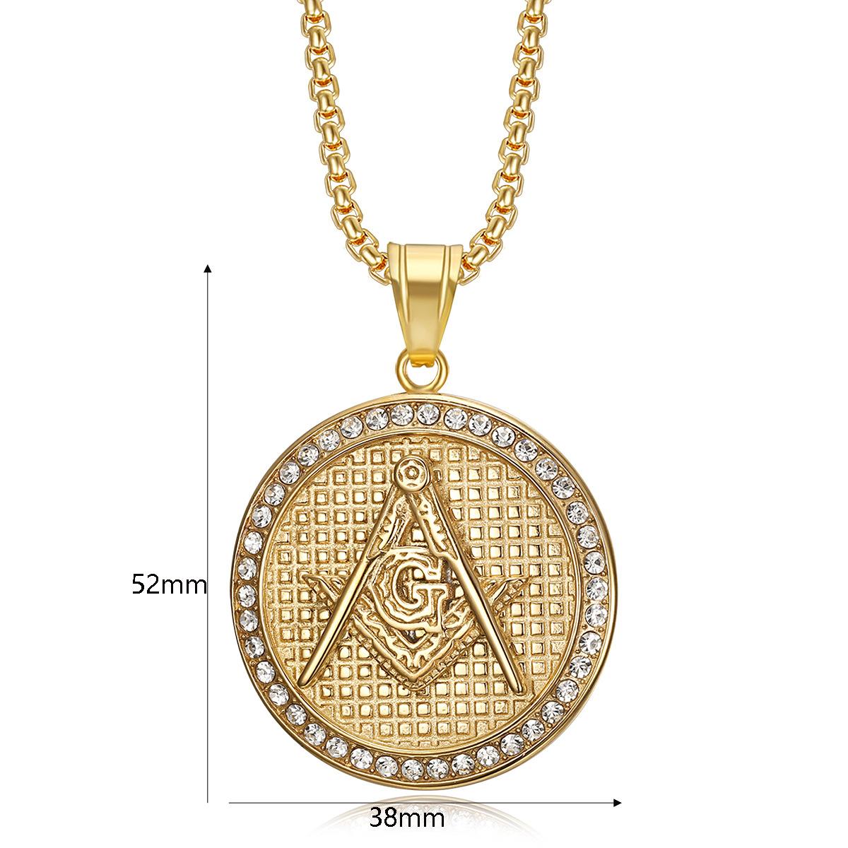 Collar con colgante masónico AG chapado en oro y acero de titanio, joyería hip hop HIPHOP transfronteriza europea y americana.