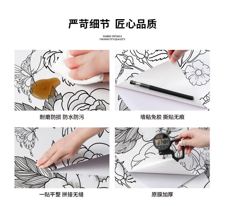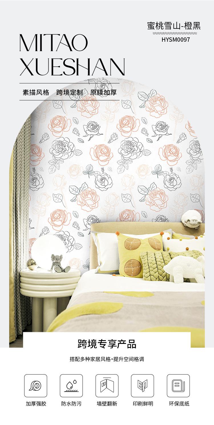Papel pintado impermeable de PVC transfronterizo para sala de estar, TV, fondo, pegatina de pared, decoración de pared de dormitorio, papel tapiz de flores autoadhesivo