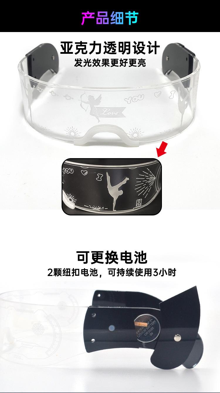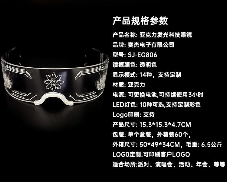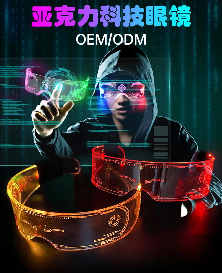 Gafas Acrílicas Tecnológicas Transfronterizas, Recargables, Emisoras de Luz, Gafas LED de Bar para Festival de Música, Animación, Luminosas, Coloridas
