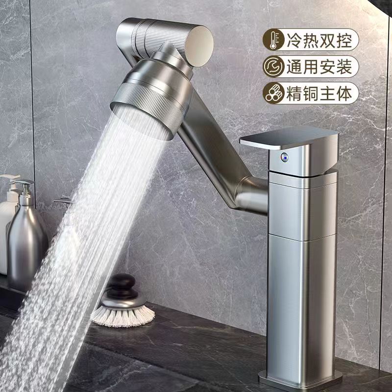Lavabo de cobre completo, pistola de agua caliente y fría, grifo gris, lavabo giratorio, fregadero, fregadero, hogar, balcón, baño, hotel