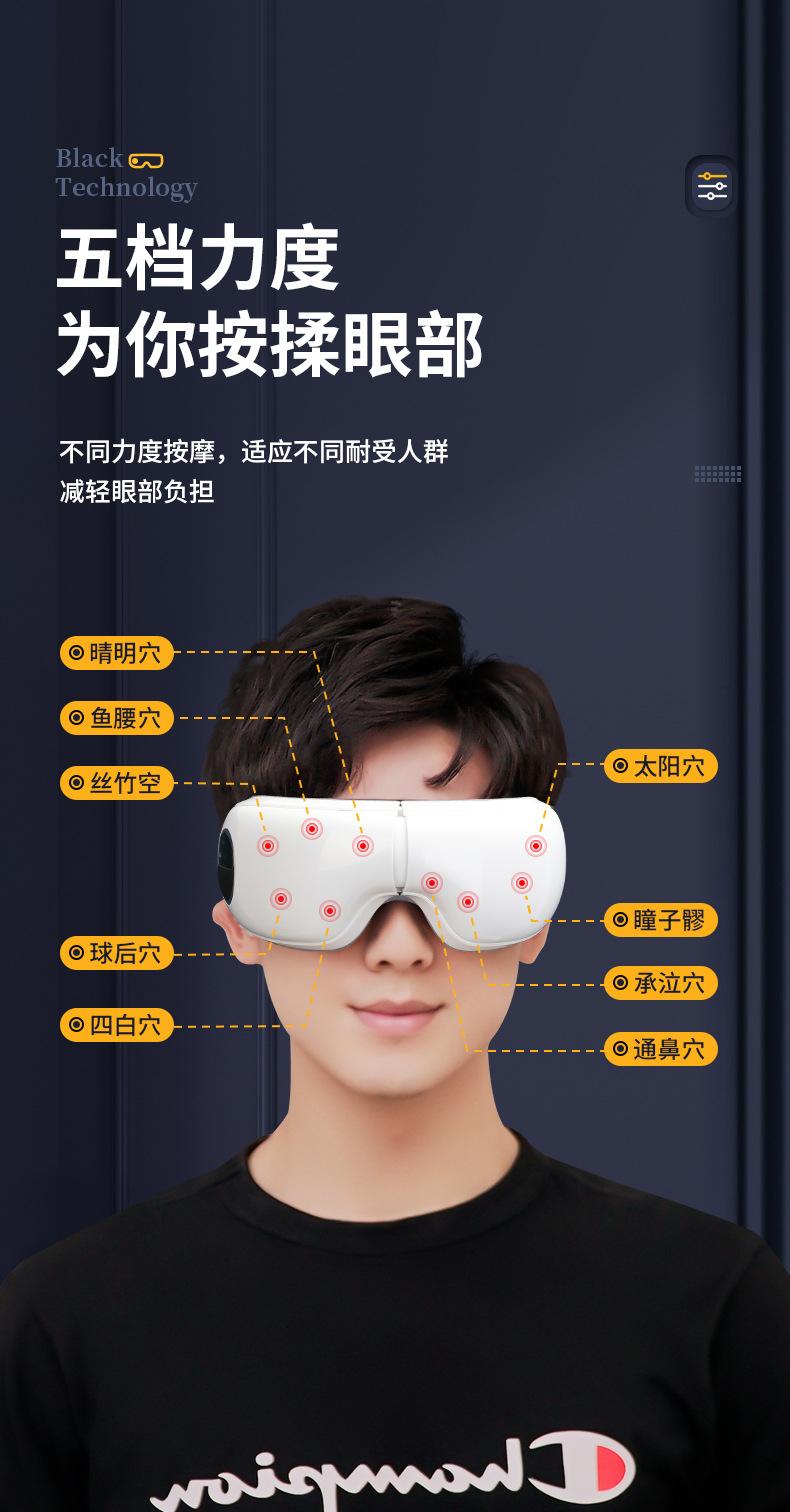 Masajeador ocular caliente transfronterizo, inteligente, con Bluetooth, música, protector ocular, compresa caliente a presión de aire, masajeador ocular al por mayor