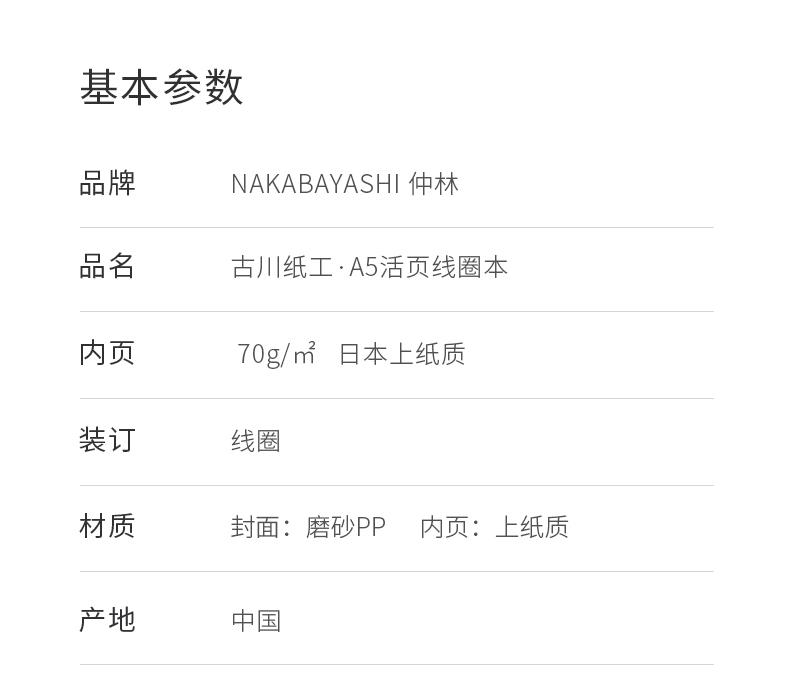Cuaderno de hojas sueltas Nakabayashi Zhonglin, tamaño A5, con anillo de sujeción extraíble y espiral manual.