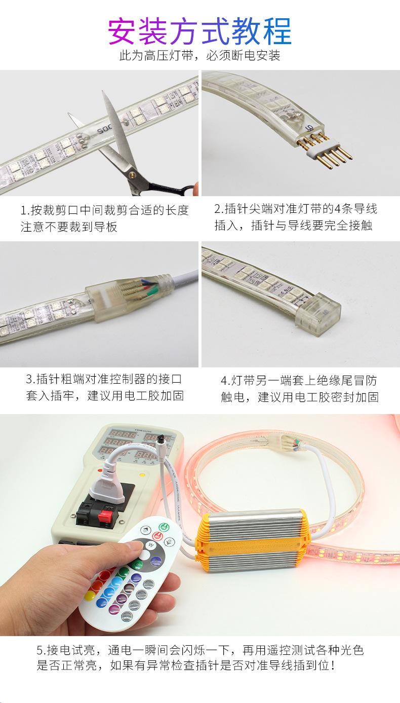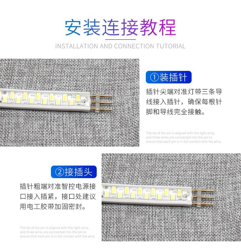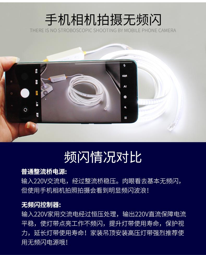 High voltage three-color light strip with flicker-free smart power supply