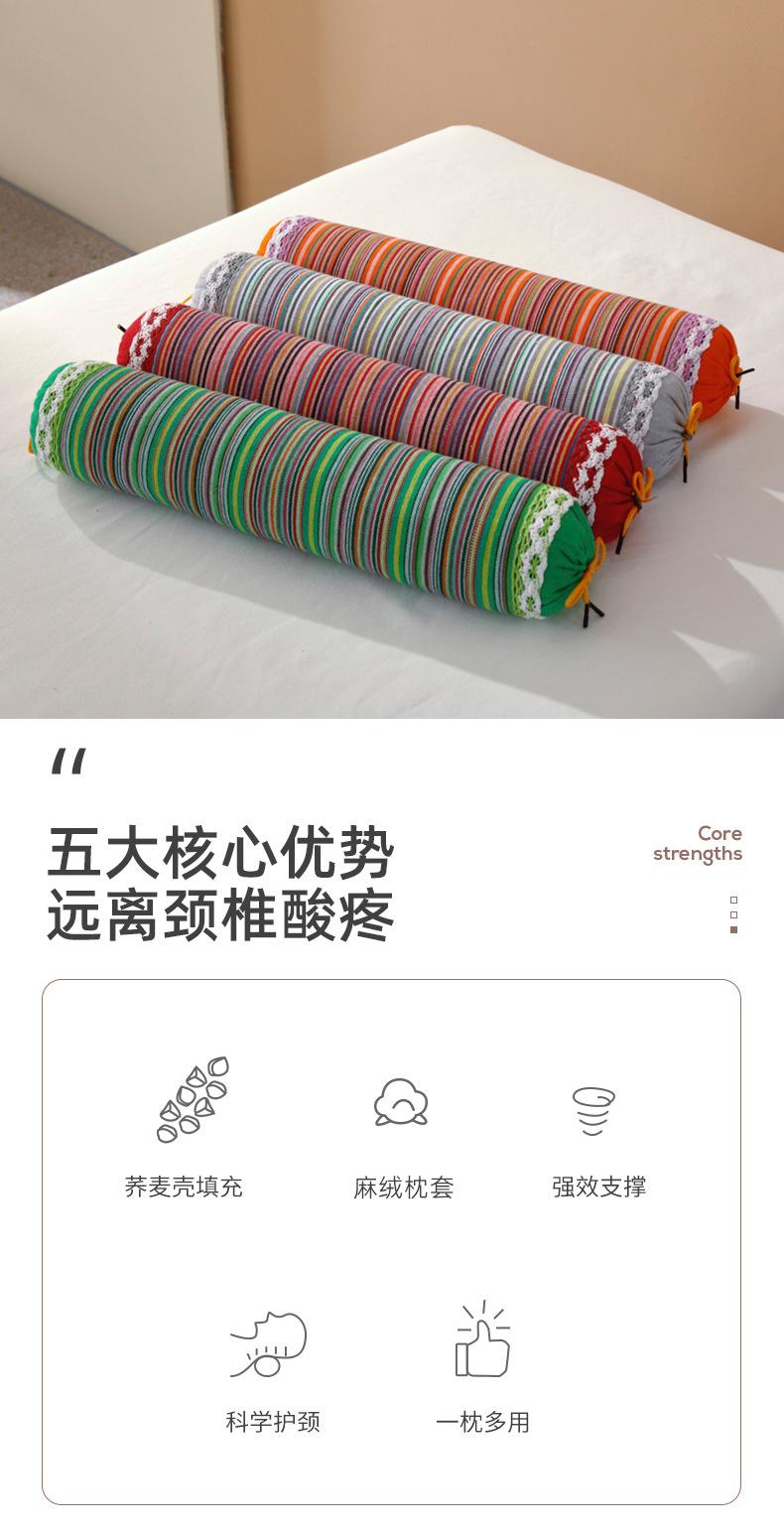 Almohada de cáscara de trigo sarraceno puro, almohada de piel de trigo sarraceno completa, almohada cervical, almohada para el cuello de caramelo, un solo par de almohadas frescas de verano para el hogar