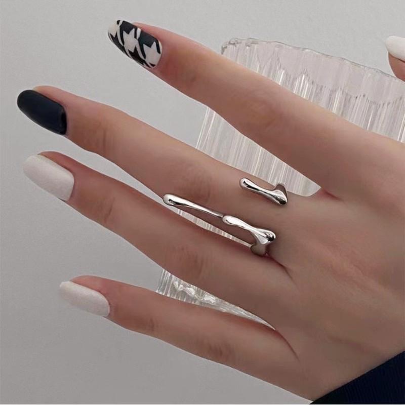 Anillo abierto irregular de lava líquida para mujer, tendencia, estilo frío nicho, anillo para novias, anillo para dedo índice