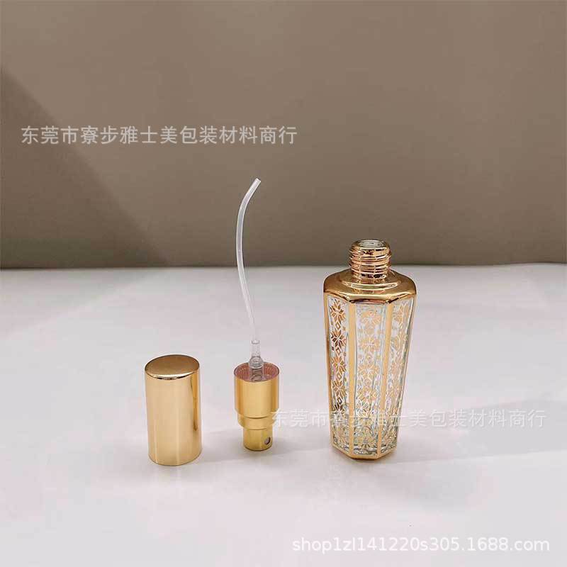 15ml; diamond-shaped spray bottle with gold color (no pattern selection); glass material