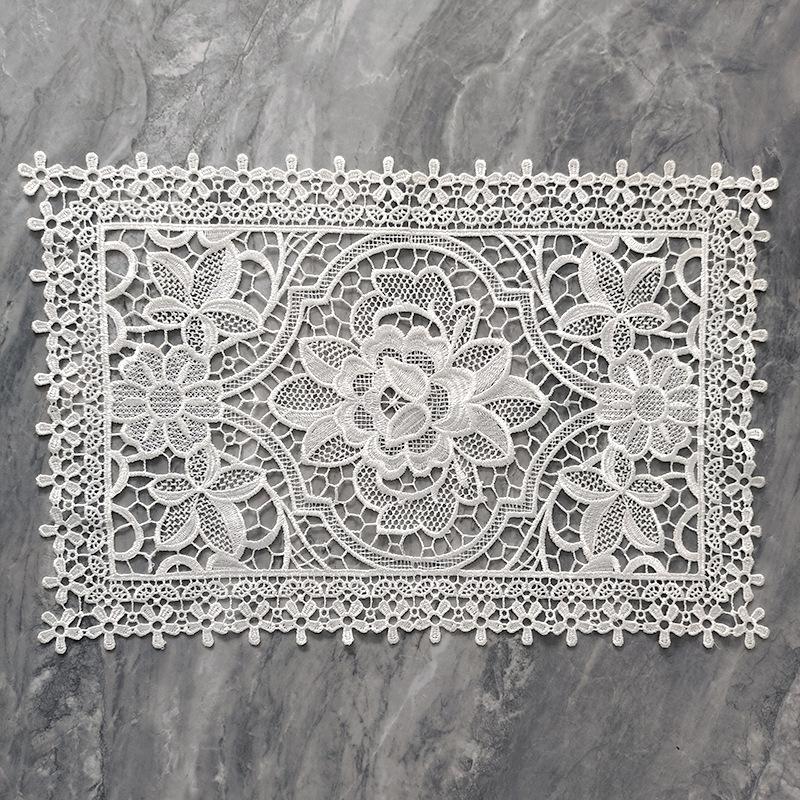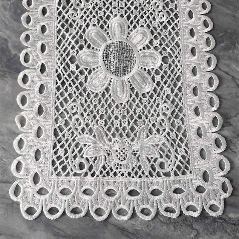 Mantel bordado rectangular, mantel bordado hueco, mantel de poliéster con encaje decorativo para el hogar, tela simple blanca hermosa