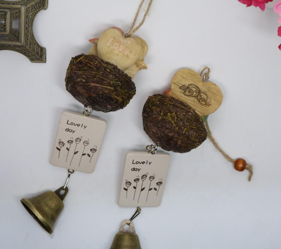 Zakka - Campana de viento de pájaro de resina para el hogar, creativa, con forma de búho, colgante decorativo, regalo para estudiantes, venta al por mayor