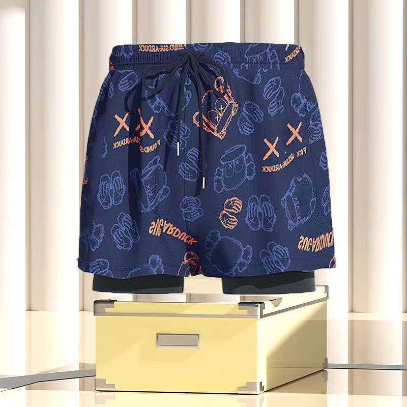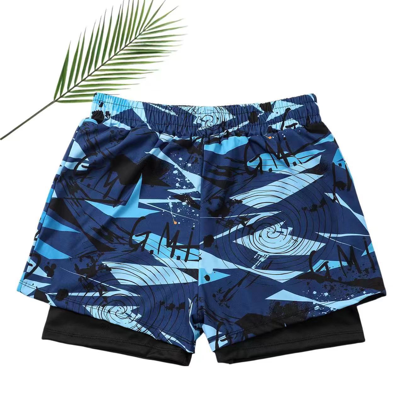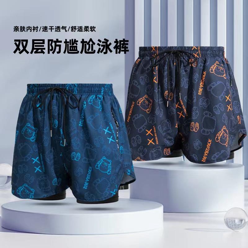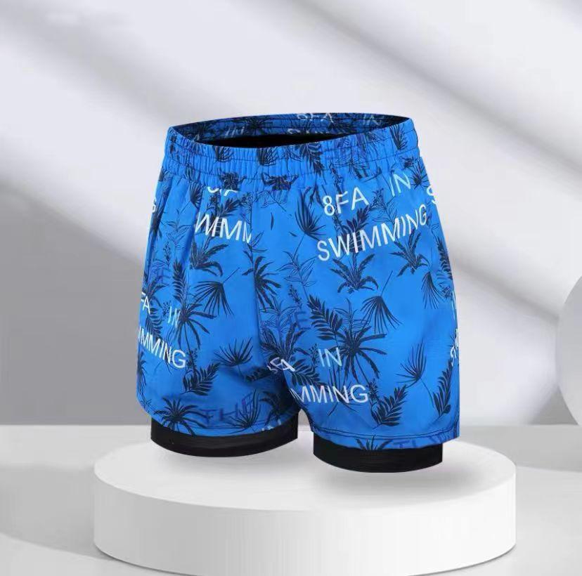 Bañador tipo bóxer de verano de doble capa, antivergüenza, de talla grande, holgado, de secado rápido, para adultos, deportivo profesional, para playa