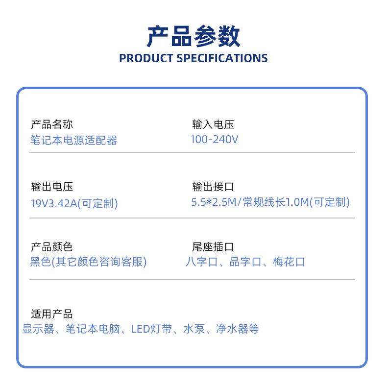 Adaptador de corriente de 19 V 3,42 A, cargador de portátil de 65 W para Asus, Acer, Lenovo y Samsung.
