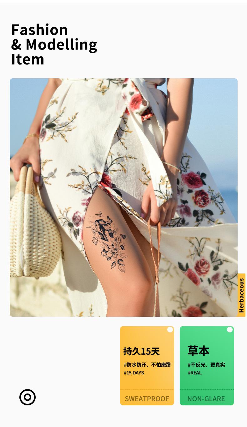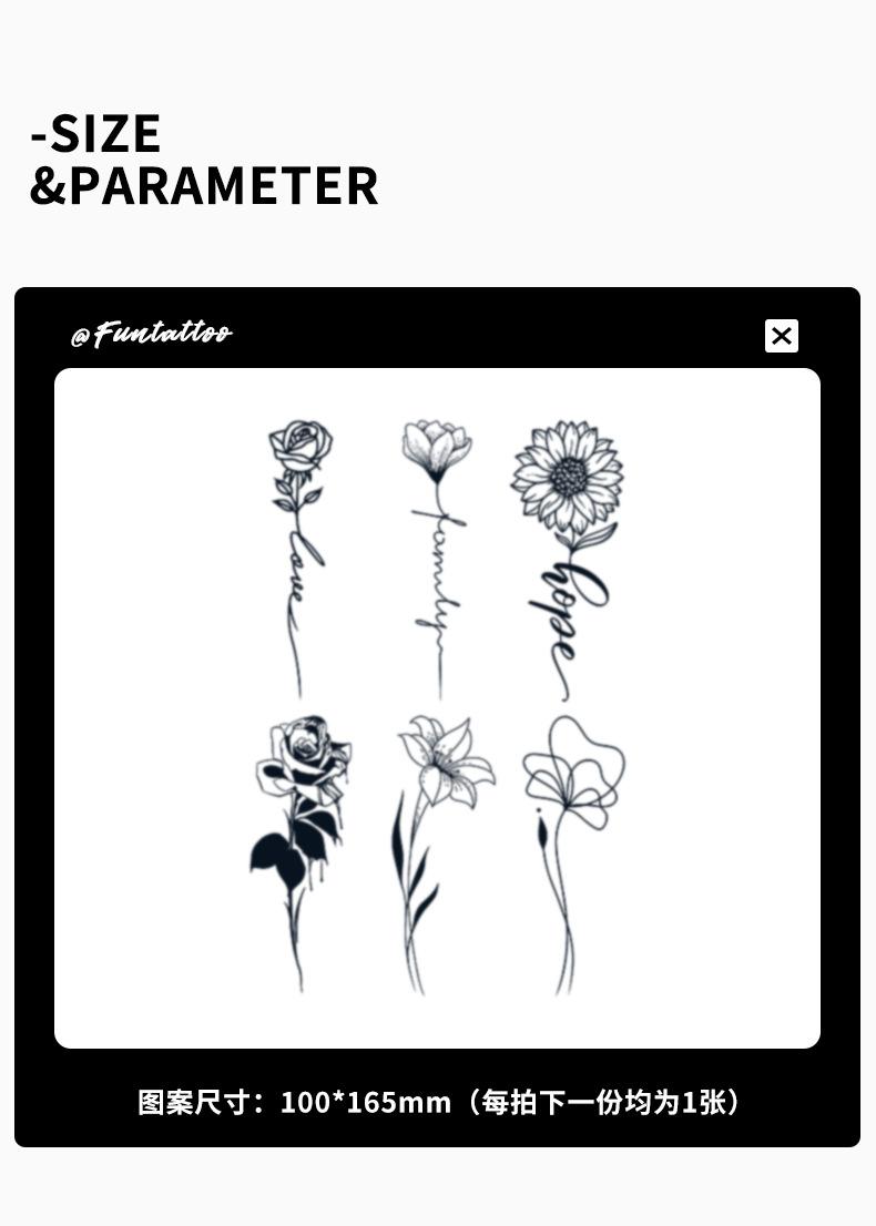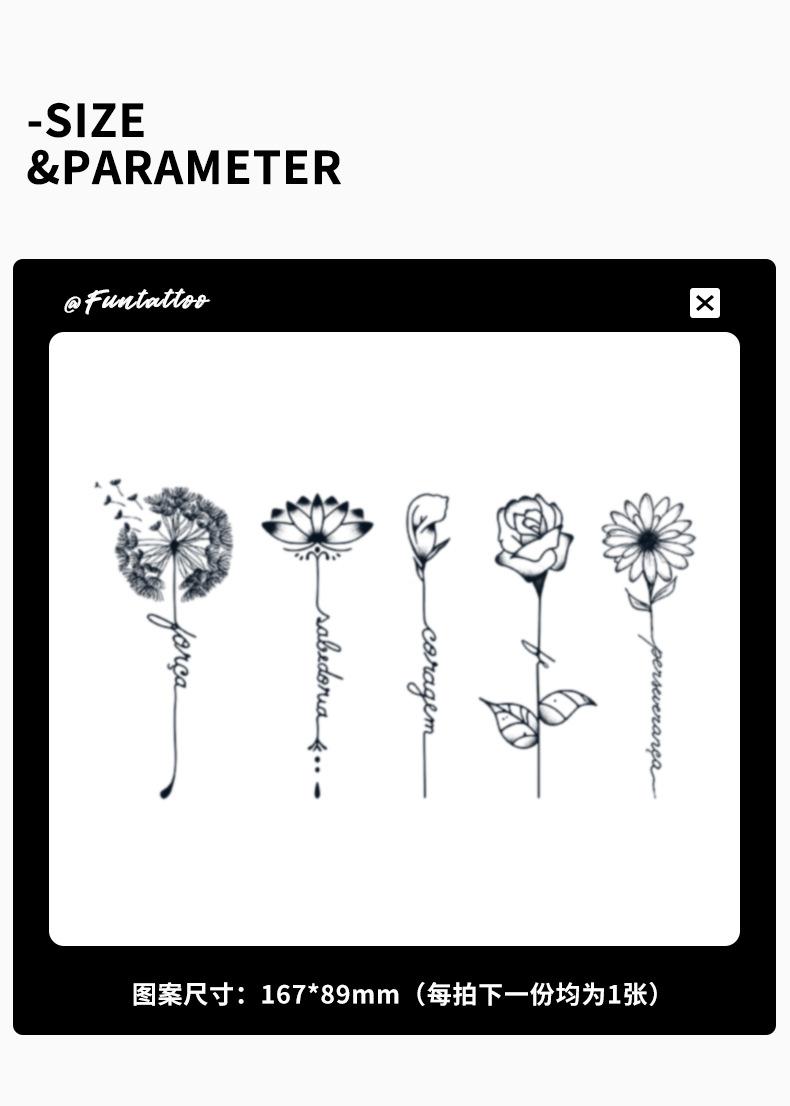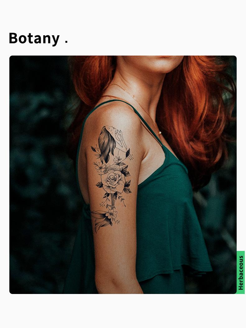 Pegatinas de tatuajes de hierbas de larga duración, resistentes al agua y al sudor, tatuajes de flores grandes en el brazo, semipermanentes, para hombres y mujeres.
