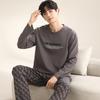 Pijama Nuevo para Hombre Primavera y Otoño 2025 Manga Larga Pantalón Largo Cárdigan Holgado Conjunto Sencillo con Letras Ropa de Casa de Algodón Puro