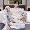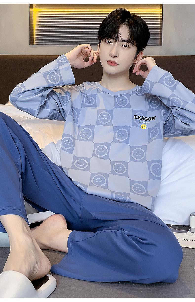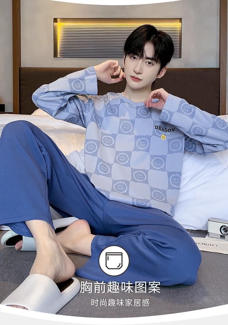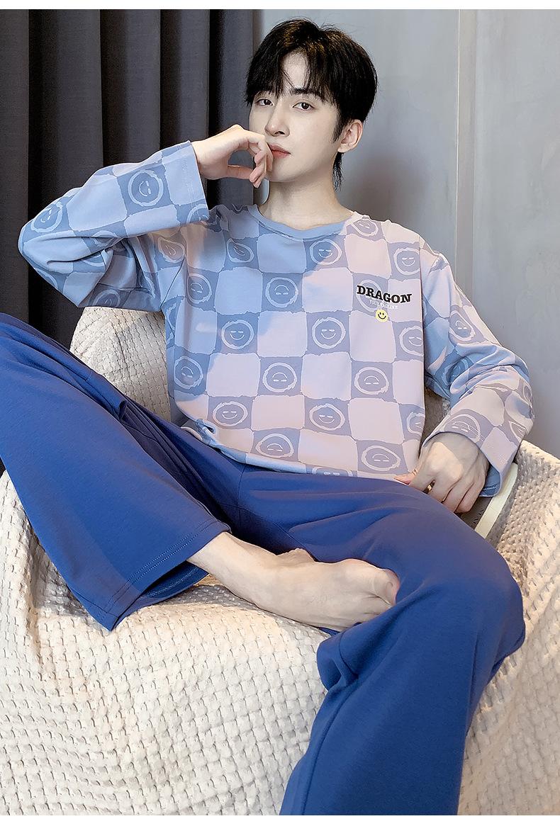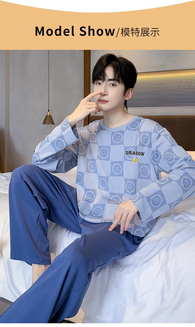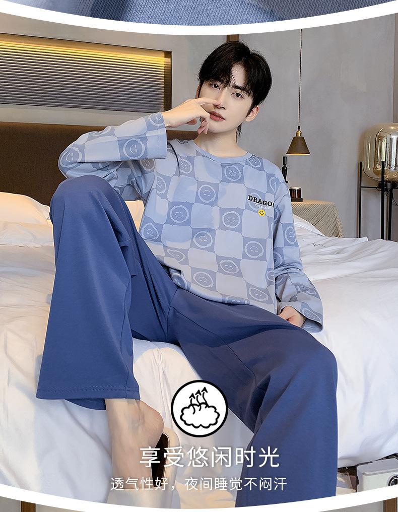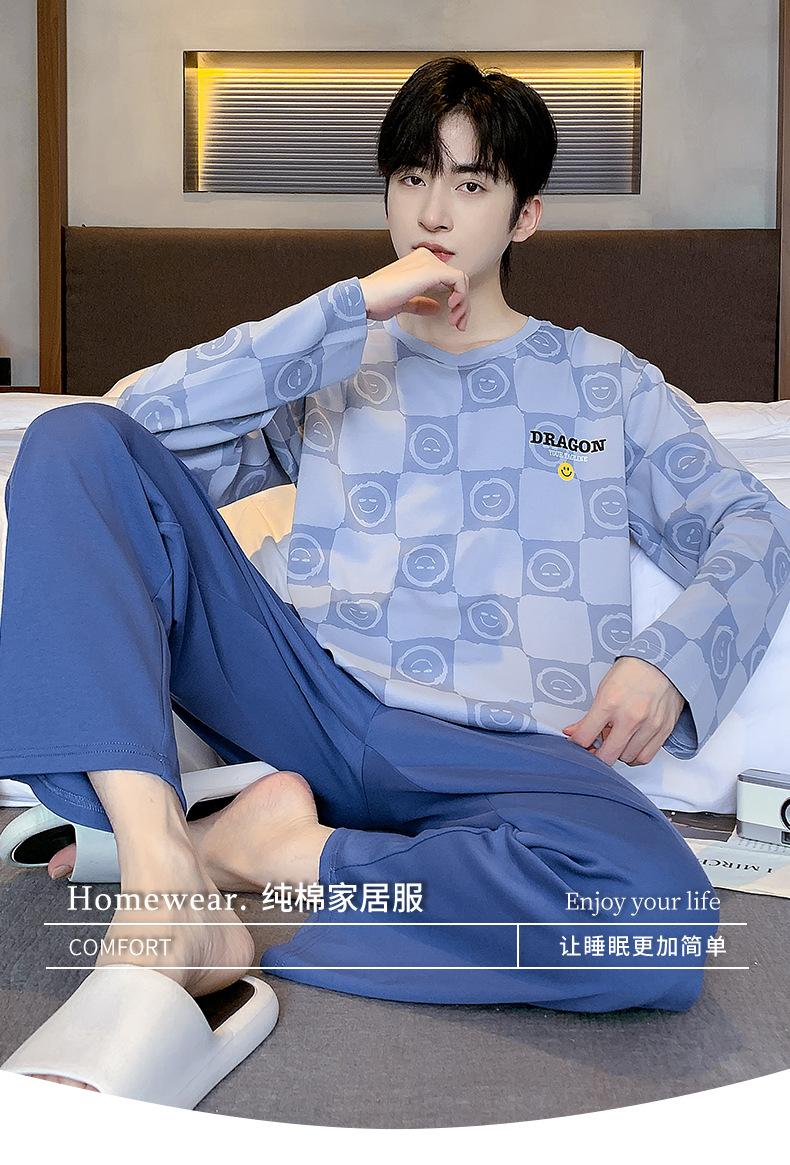 Pijama para Hombre Primavera y Otoño Algodón Puro Manga Larga Casual Talla Grande Sencillo Ropa para el Hogar Ropa Exterior Otoñal para Hombre Traje Holgado