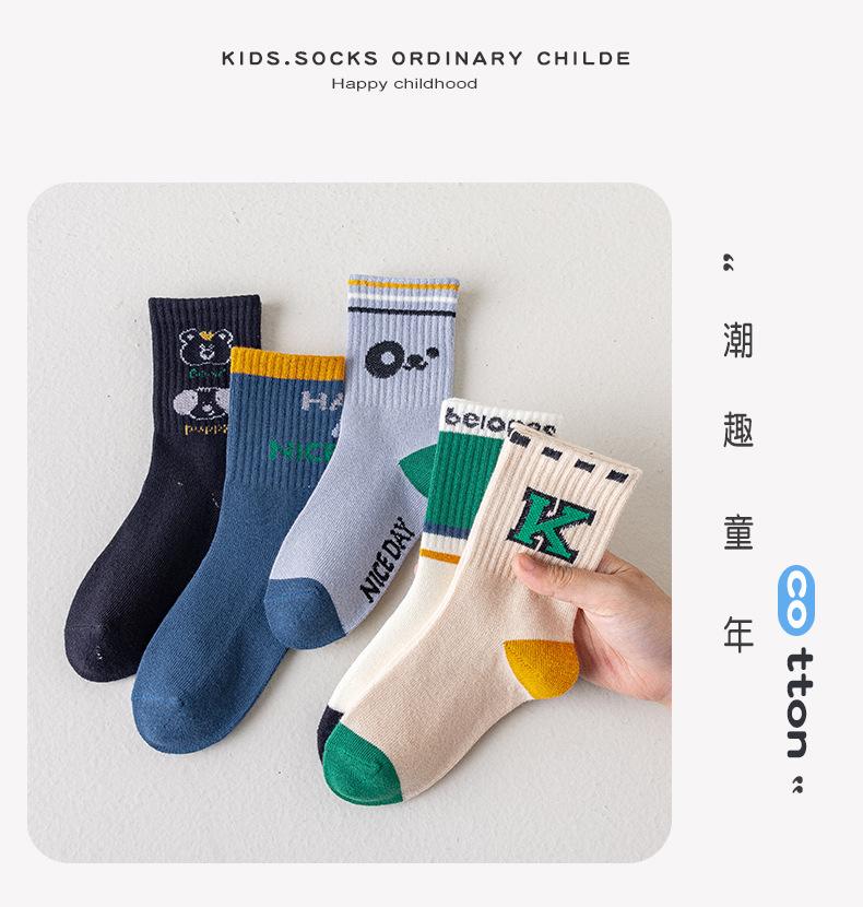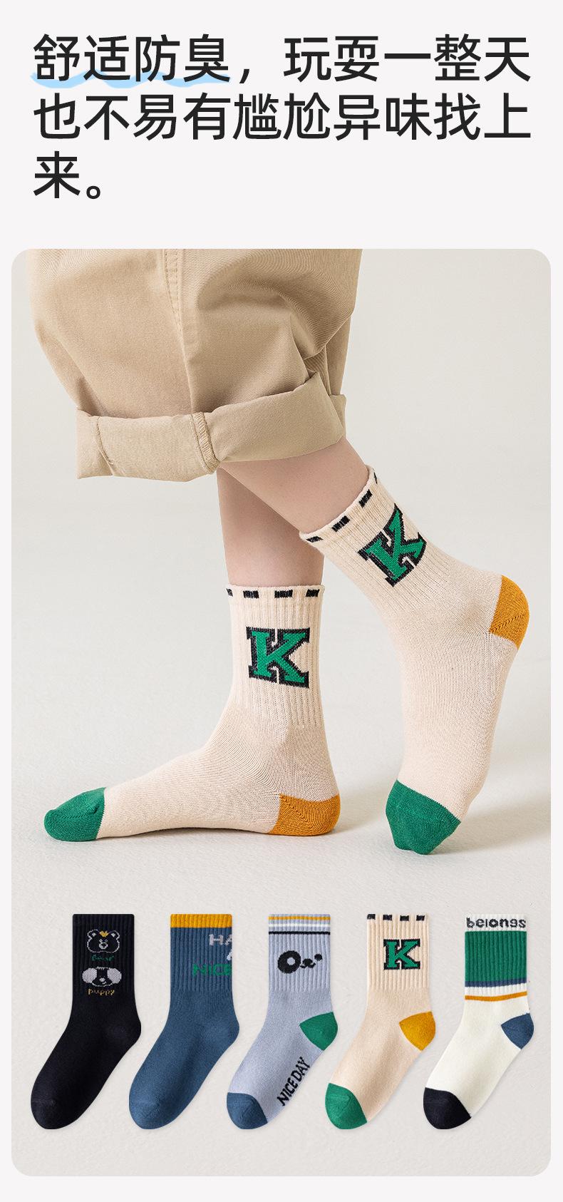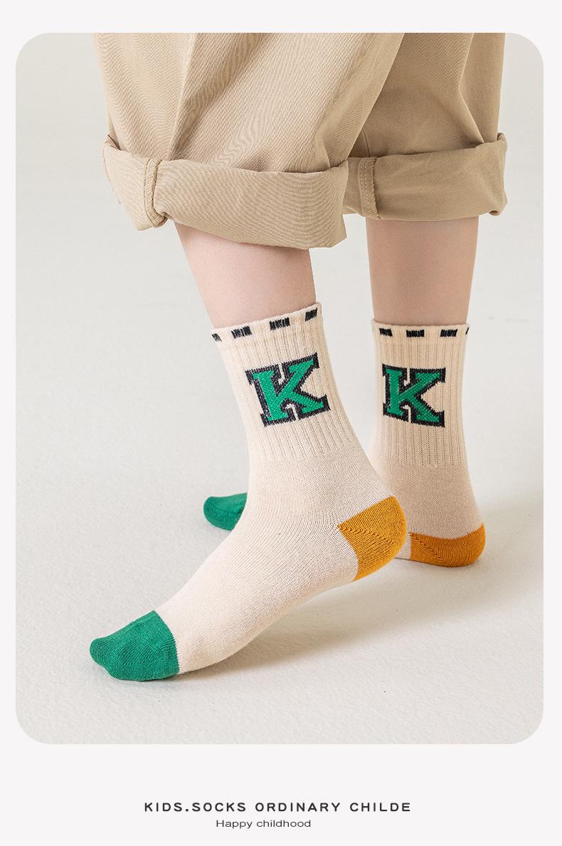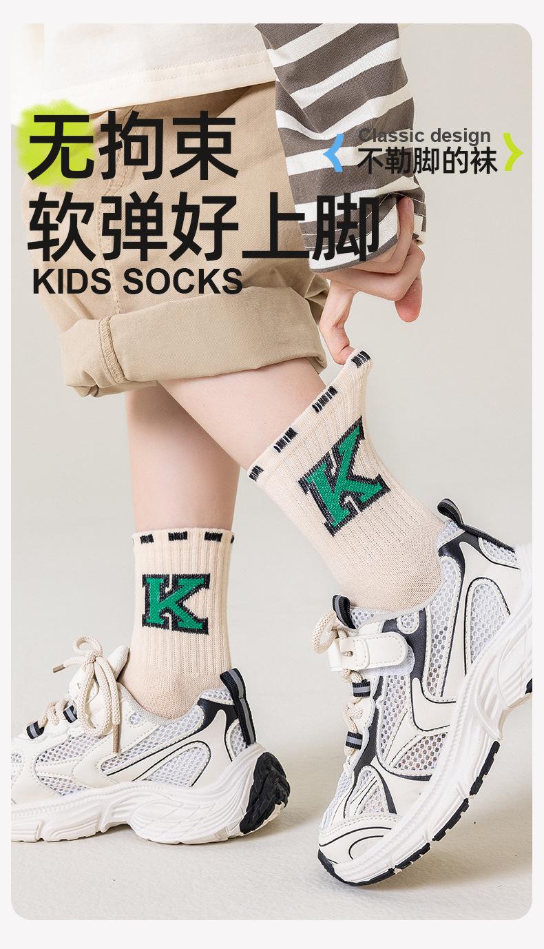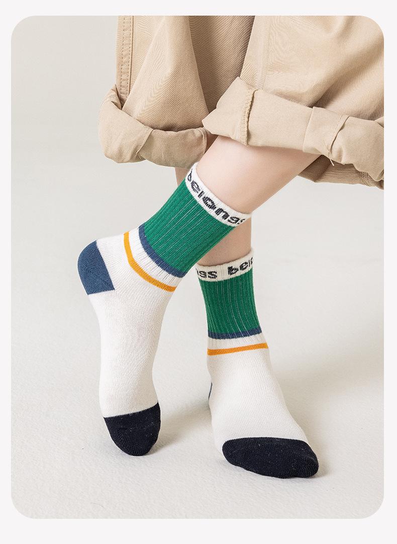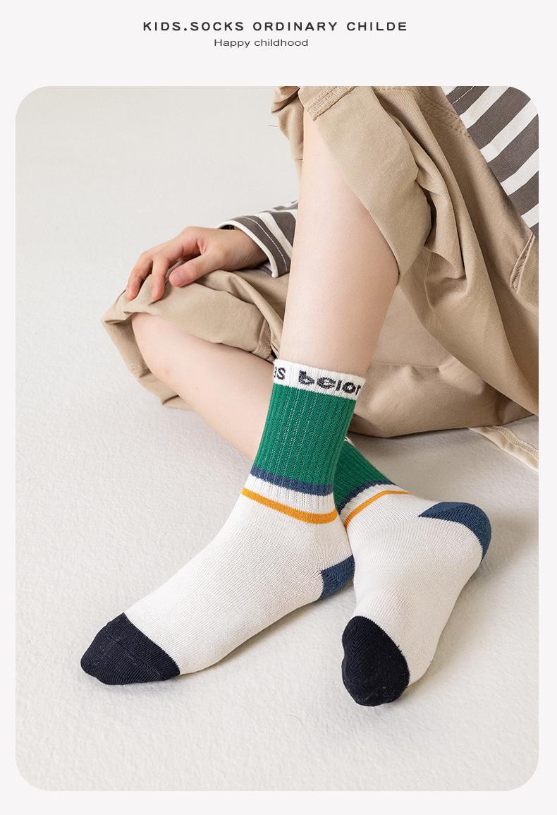 Calcetines de algodón para niños, primavera y otoño, para niños y adolescentes, calcetines de tubo medio, calcetines deportivos transpirables de otoño con letras de moda para estudiantes
