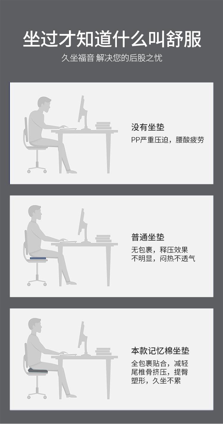 Cojín de espuma viscoelástica para silla de oficina, transpirable, para el verano, para el asiento en forma de U, para taburete y cojín grueso.