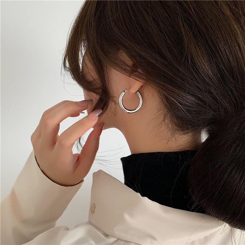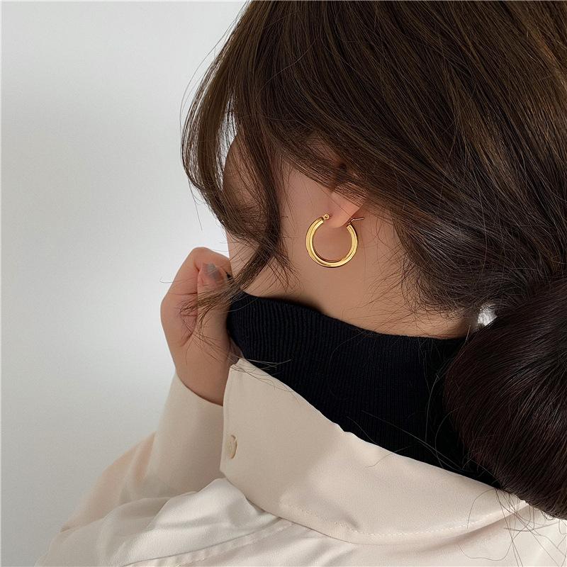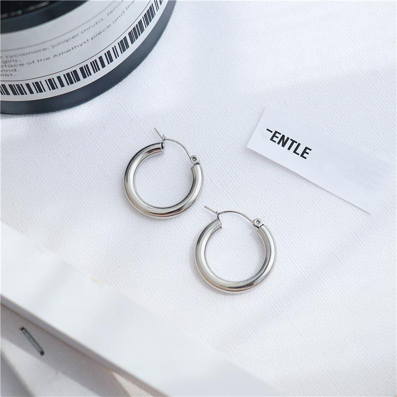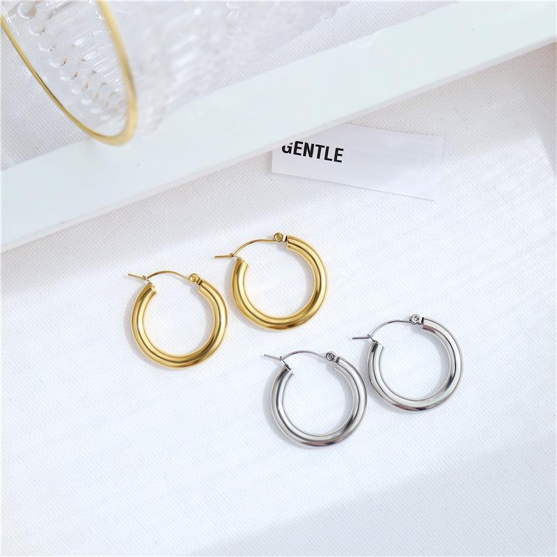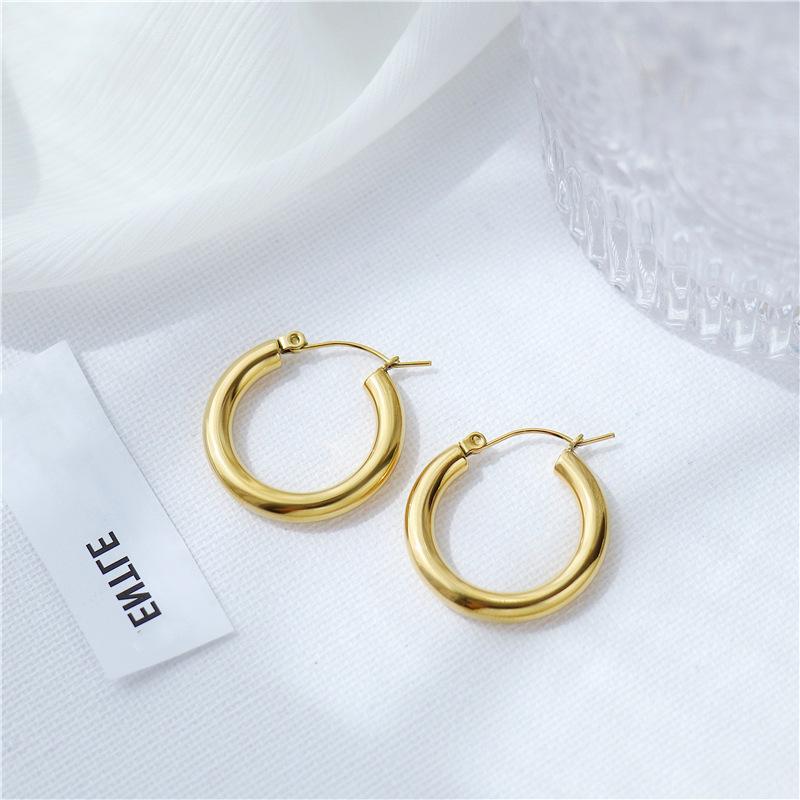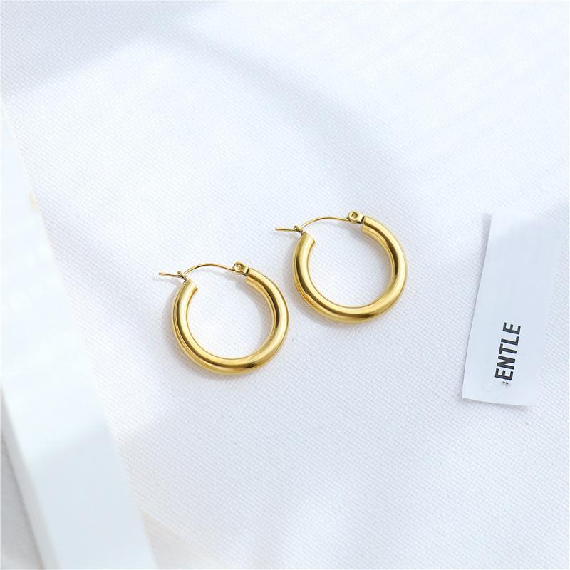 Pendientes de aro frío estilo europeo y americano con diseño de viento, pequeños anillos circulares básicos de acero de titanio grueso y dorado, joyería para mujer