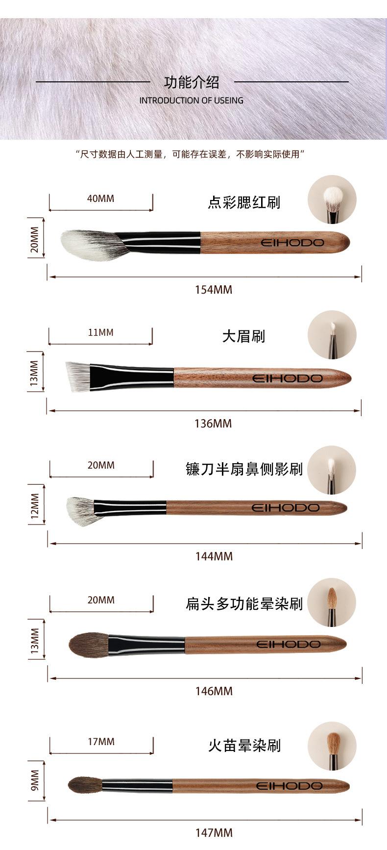 Juego completo de brochas de maquillaje Cangzhou con pelo de animal, brocha para cejas, brocha para sombras de ojos, brocha para rubor, brocha para recortar, brocha para iluminar.