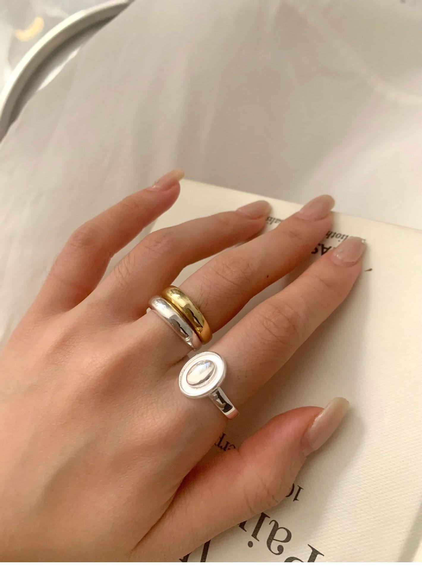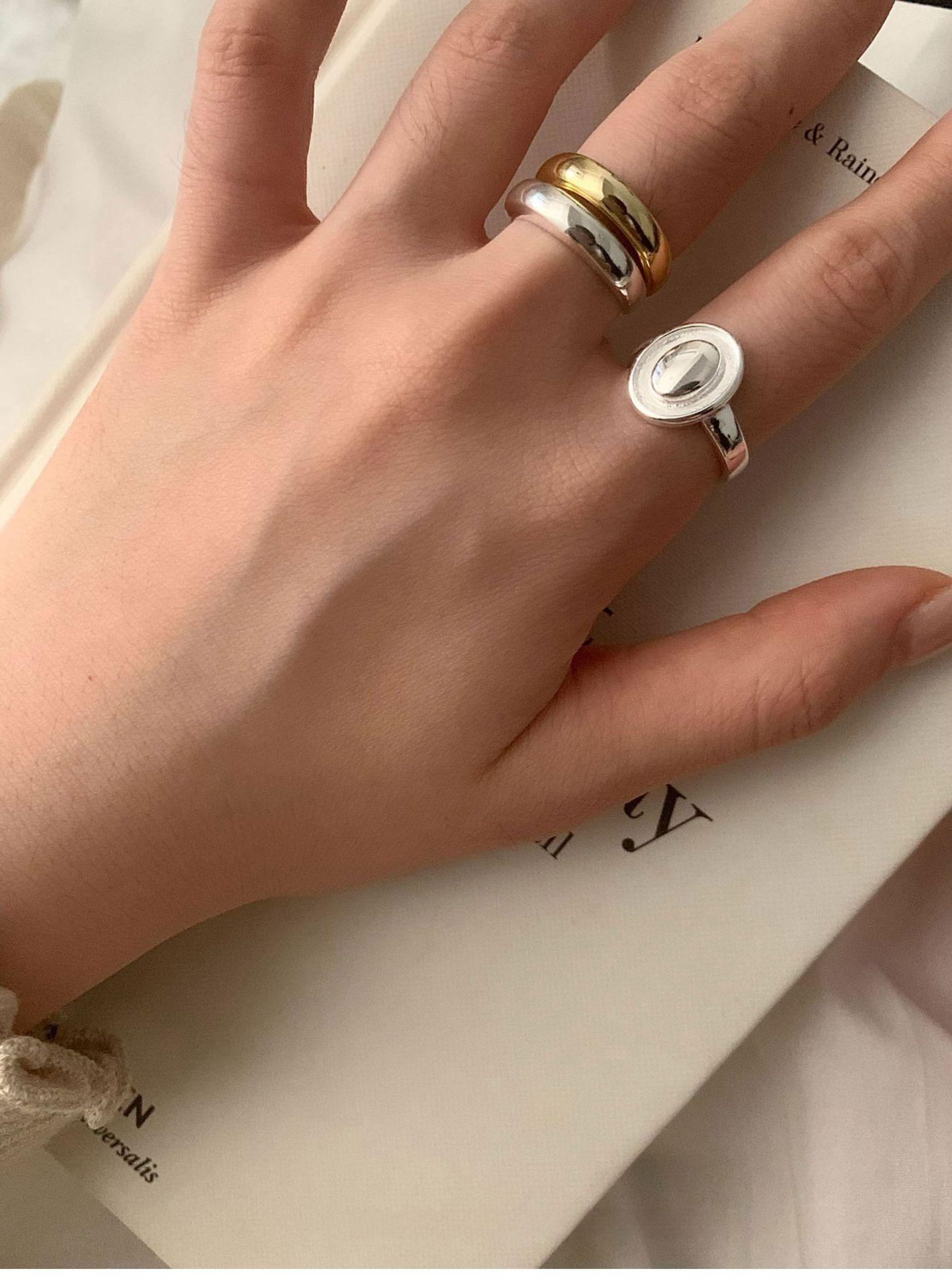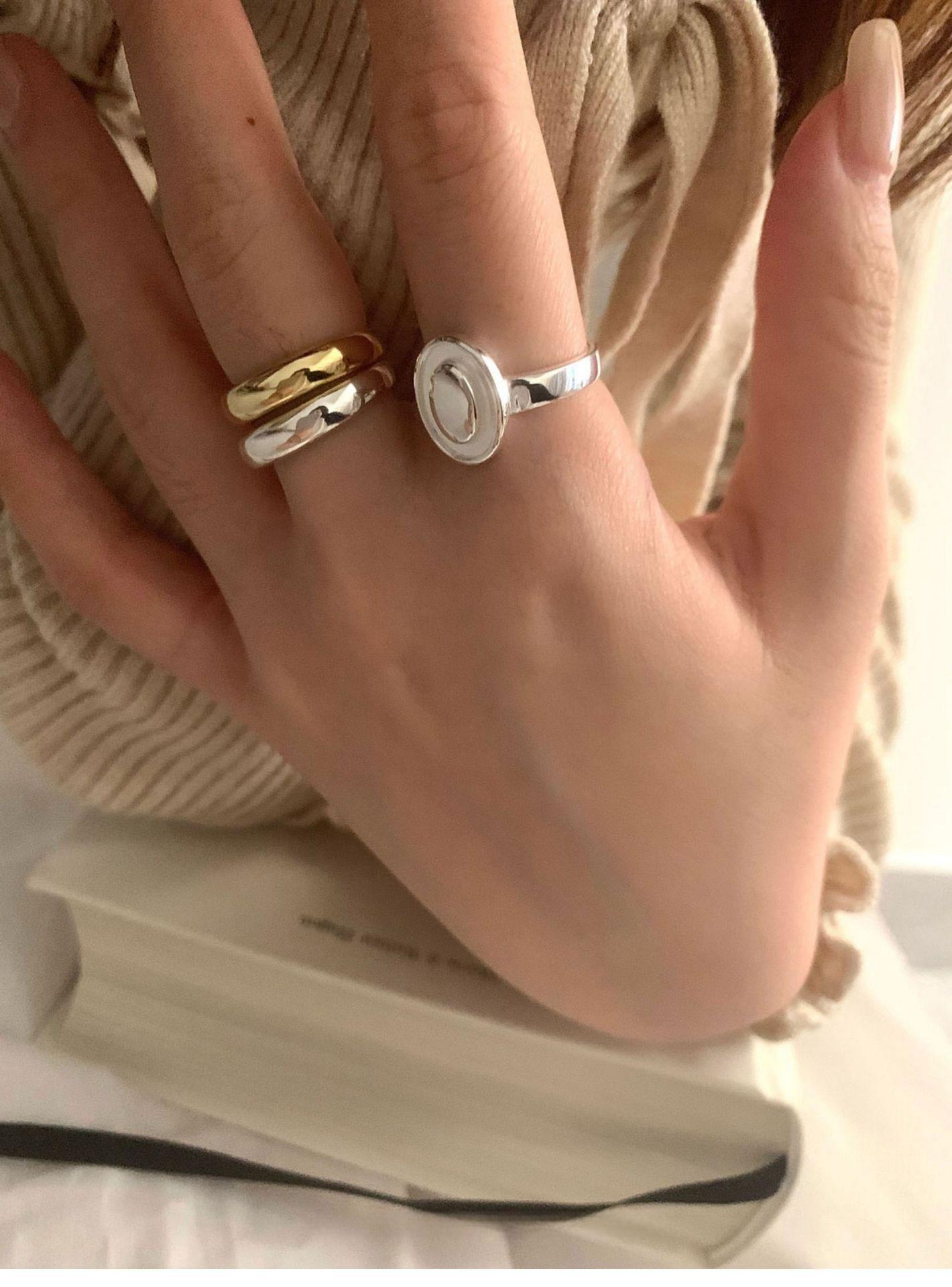 Anillo ovalado de nicho estilo coreano en plata esterlina S925, ligero y liso, anillo individual dorado, anillo para dedo, joyería de lujo ligera y de alta gama.