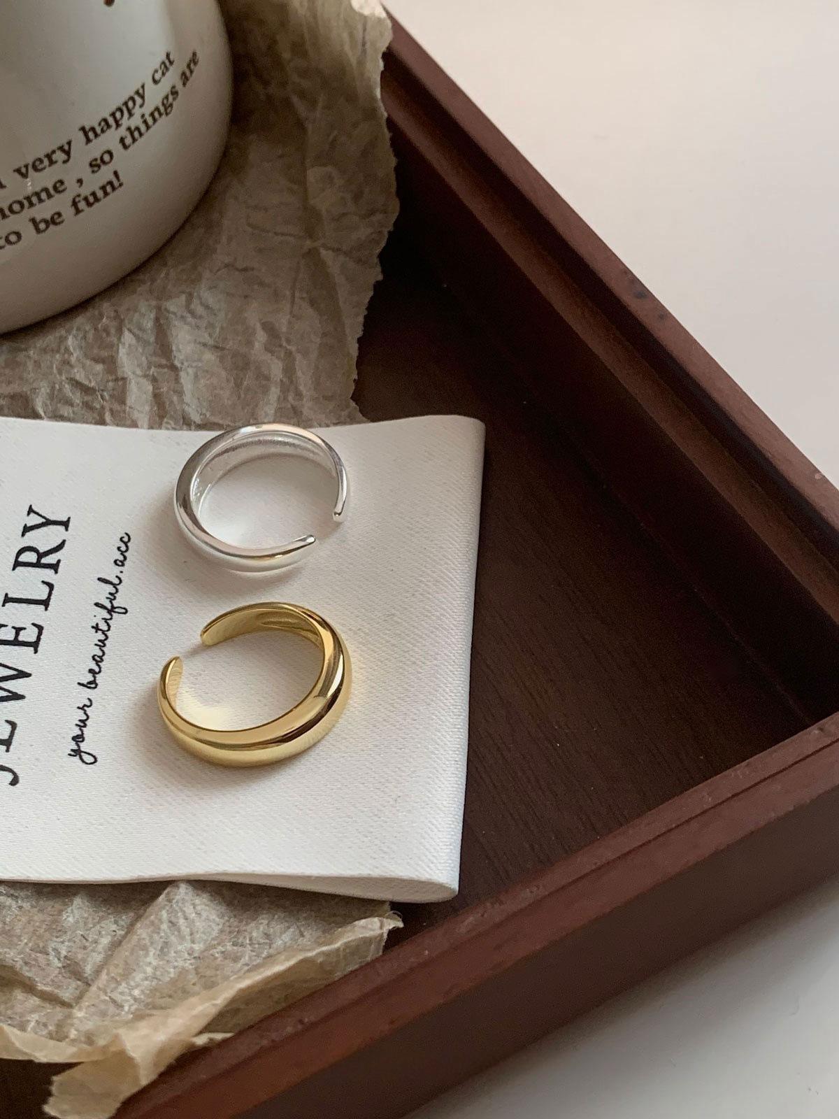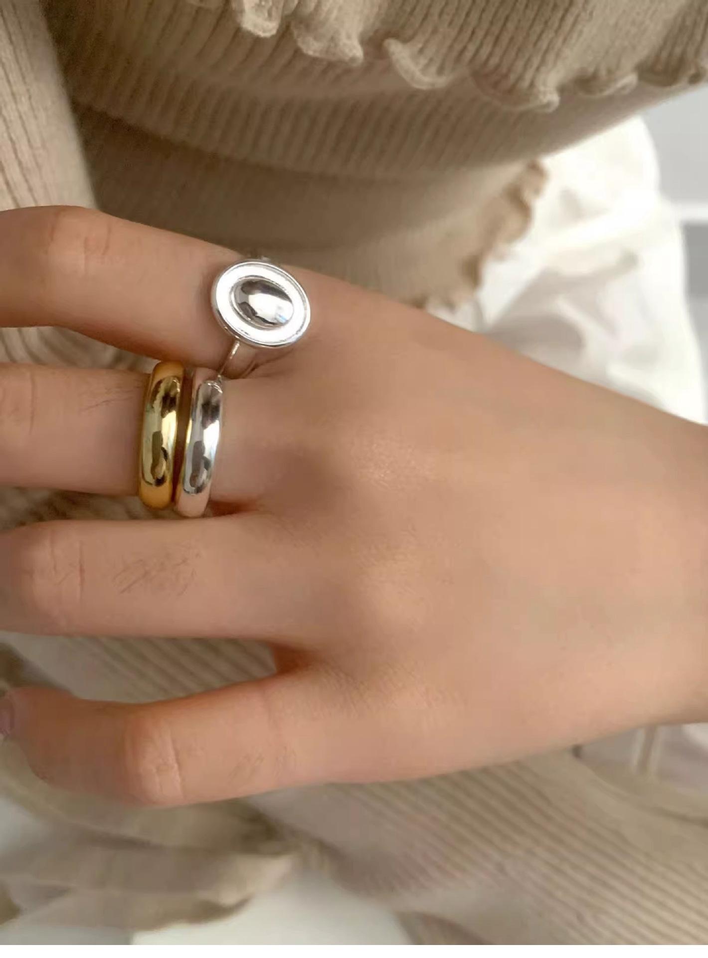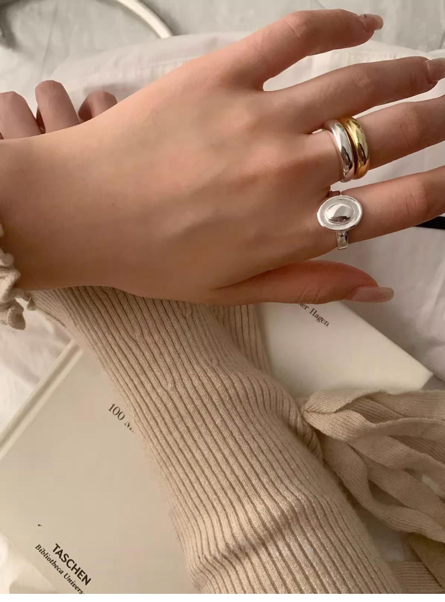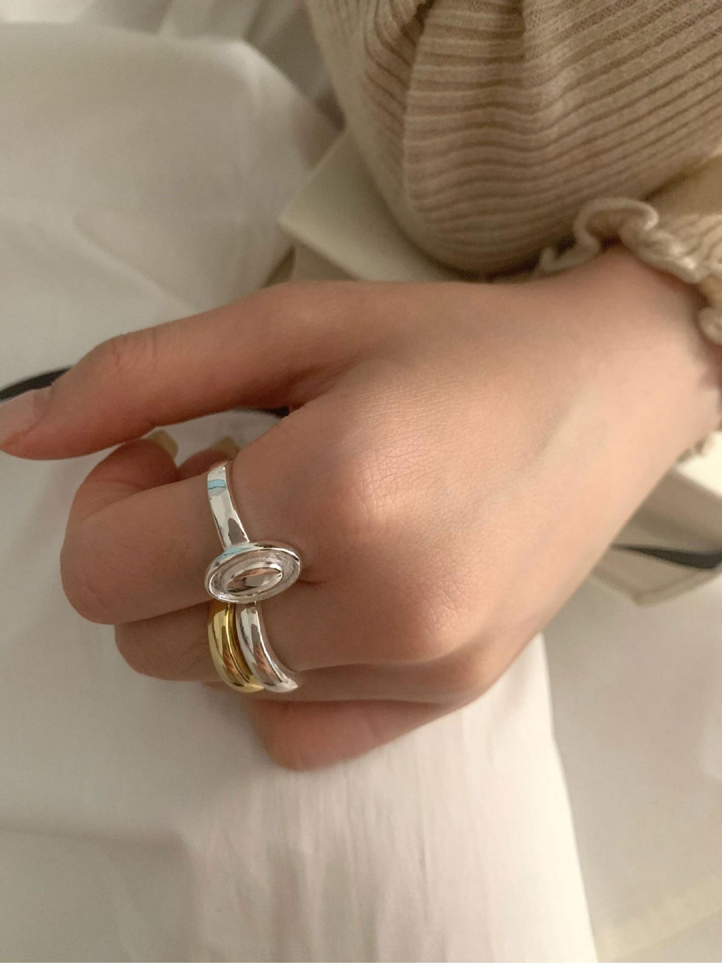 Anillo ovalado de nicho estilo coreano en plata esterlina S925, ligero y liso, anillo individual dorado, anillo para dedo, joyería de lujo ligera y de alta gama.