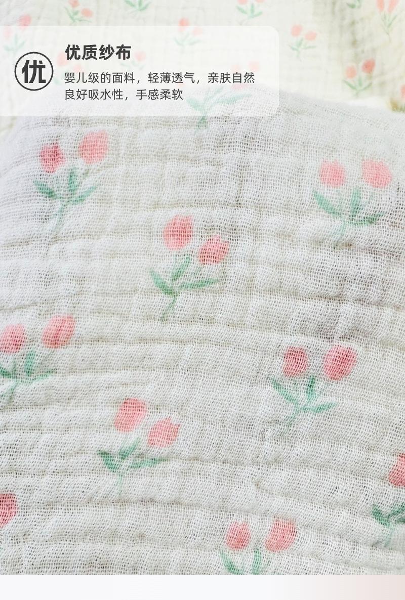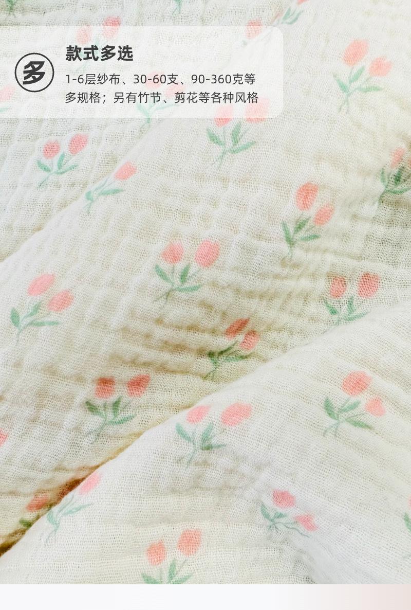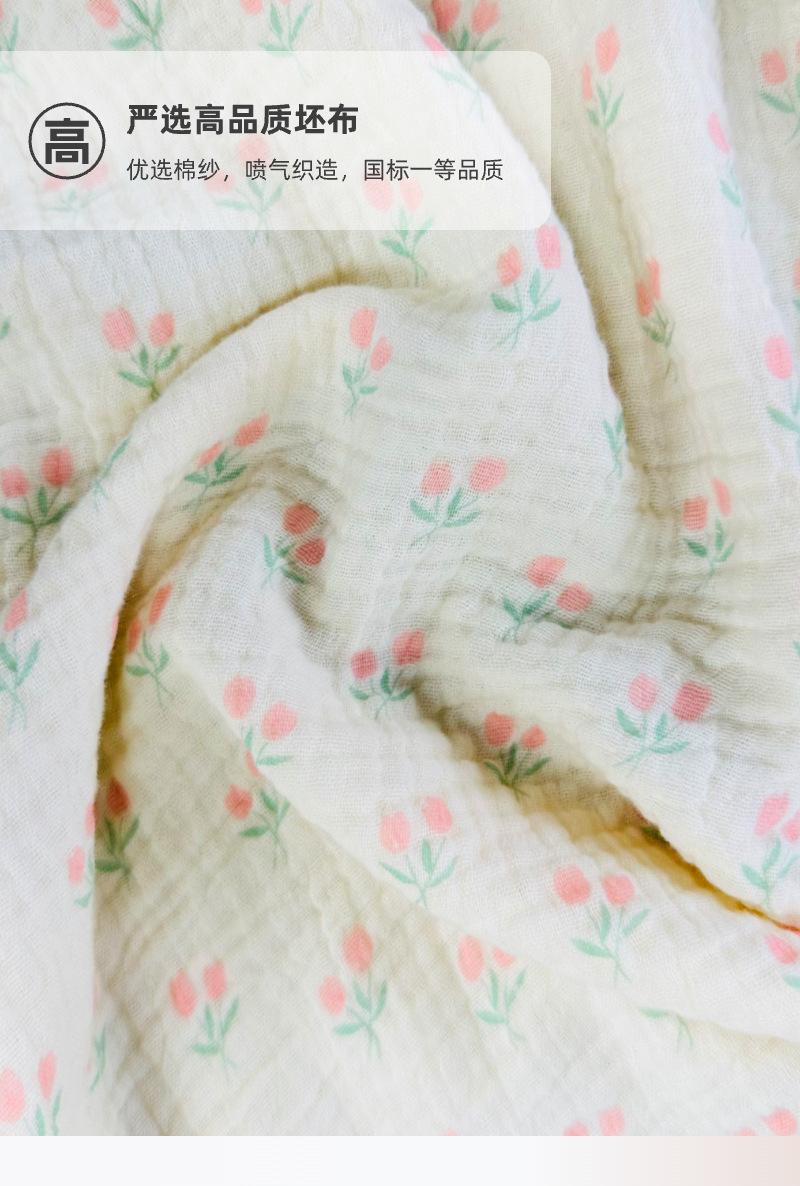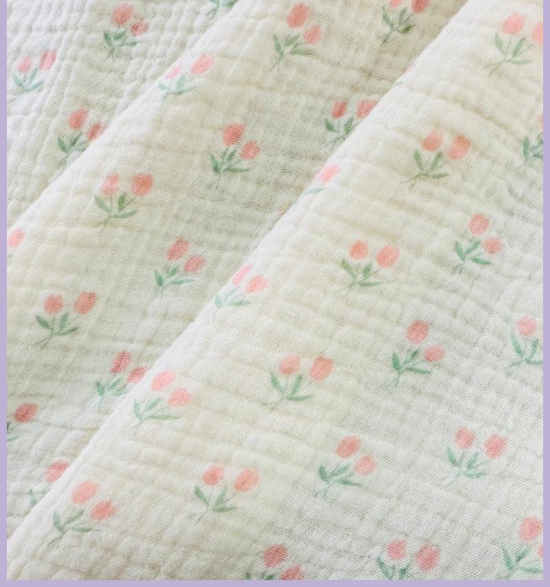 Tela crepé de algodón de doble capa con estampado de tulipanes pequeños para ropa de bebé, para el hogar, para toallas de saliva