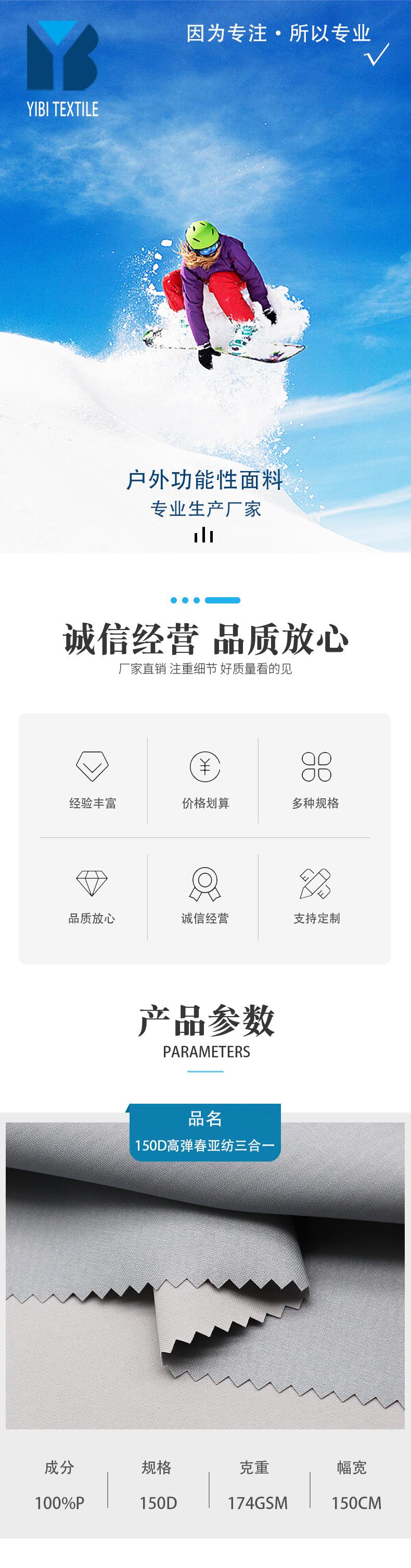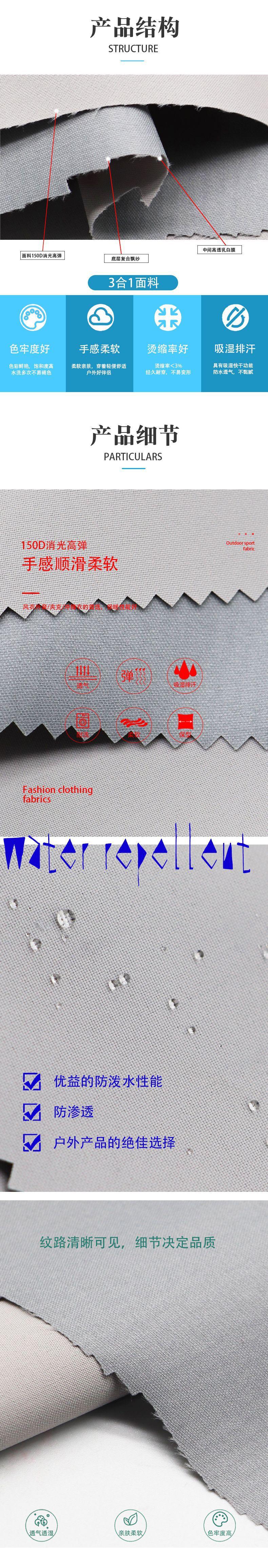 Tejido para chaqueta de montaña pongee de poliéster elástico mate 75D tres en uno, impermeable, a prueba de aceite y a prueba de manchas.