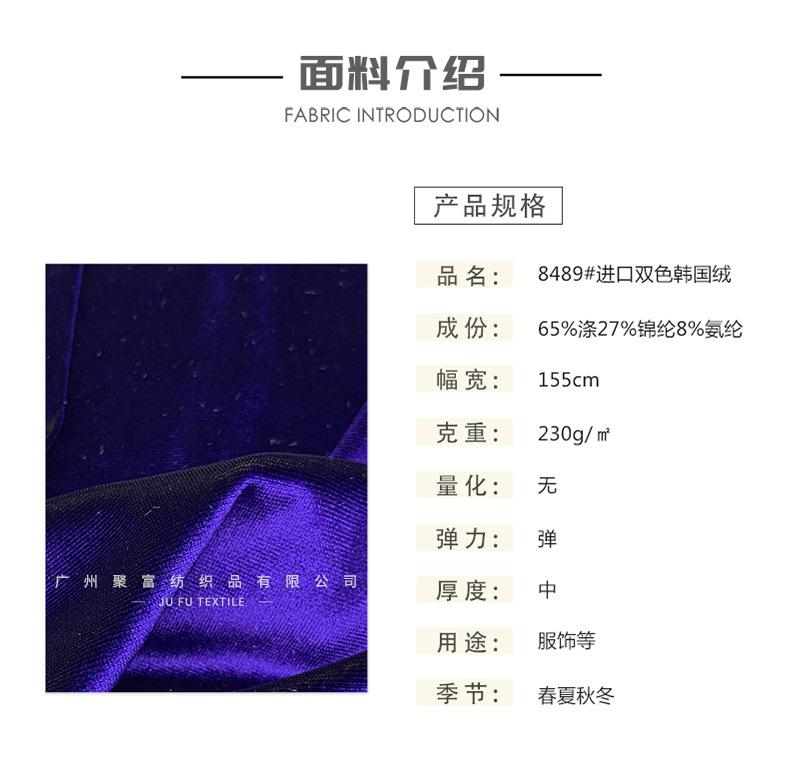 Nuevo cifrado de terciopelo coreano 8489# importado de dos colores de terciopelo coreano mezclado tela elástica brocado poliéster tela de vestido de moda