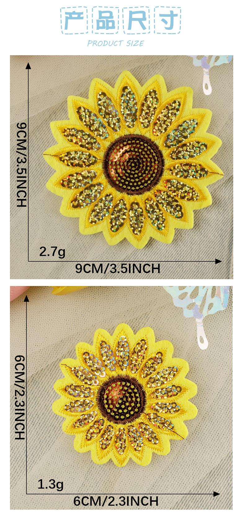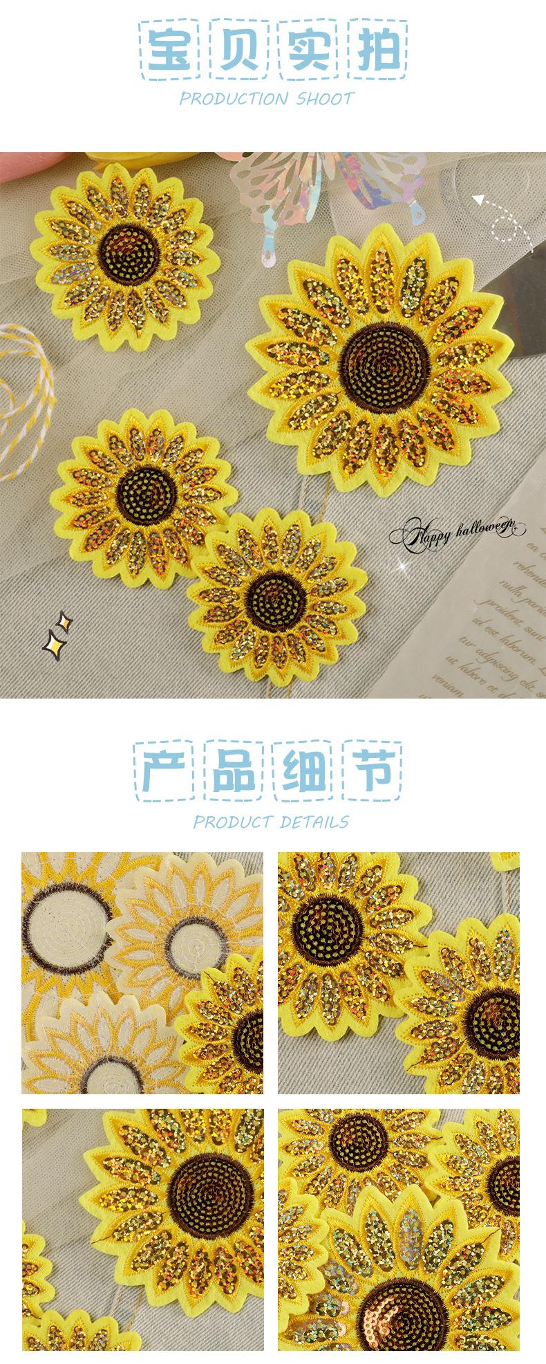 Etiqueta de bordado por computadora, etiqueta de tela, lentejuelas, pegatinas de bordado de girasol, accesorios de joyería, accesorios de ropa, parches adhesivos, insignias, pegatinas de tela