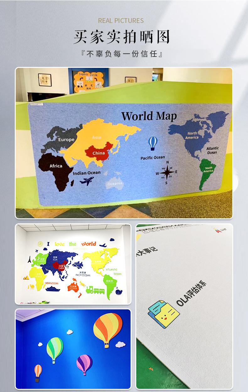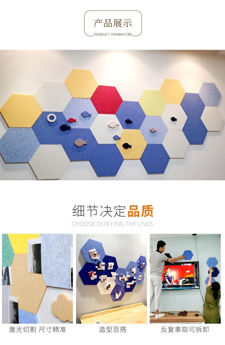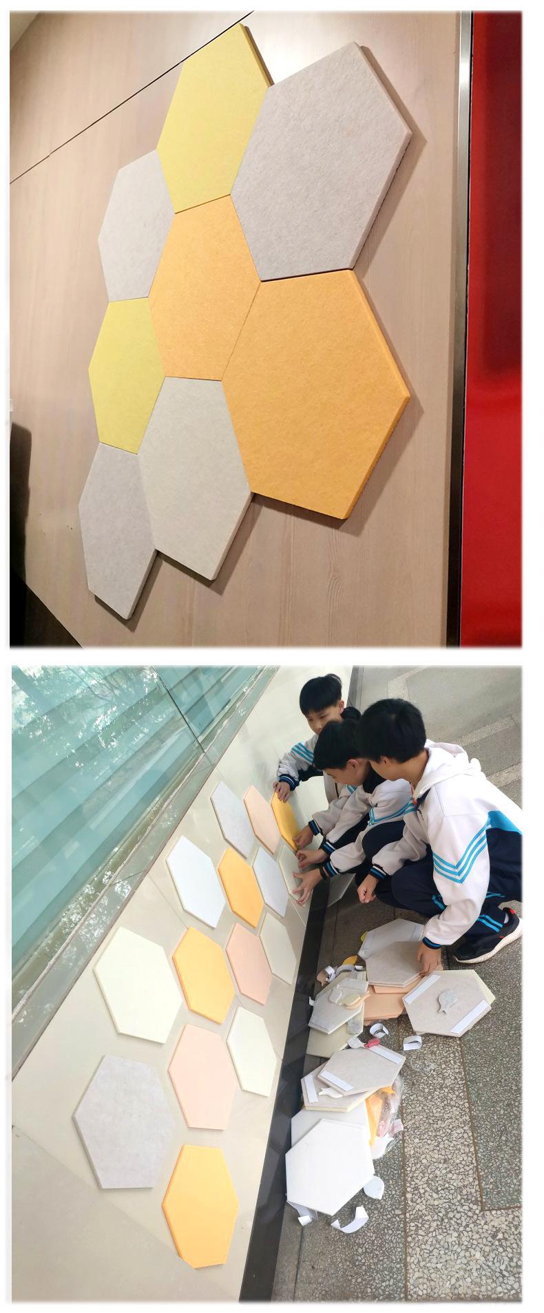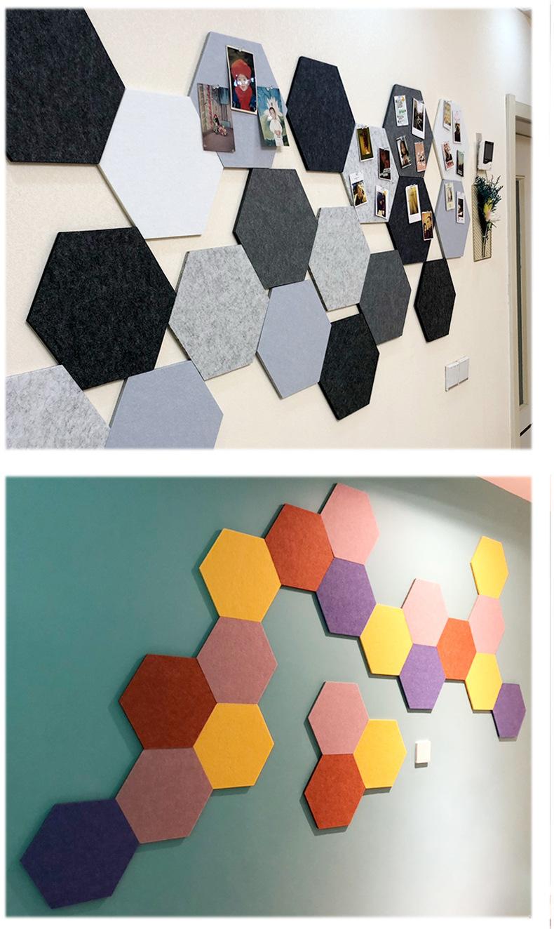 [Venta al por mayor de fábrica] Tablero de mensajes de pared de fieltro hexagonal de color, tablero de exhibición de fotos para jardín de infantes, tablero absorbente de sonido