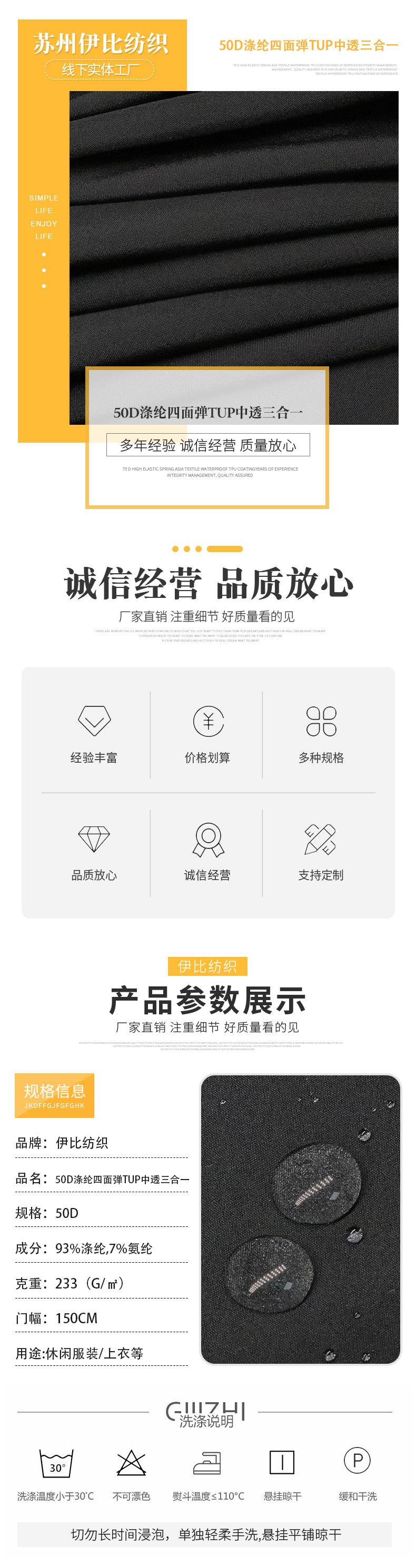 Tejido para chaqueta de montaña pongee de poliéster elástico mate 75D tres en uno, impermeable, a prueba de aceite y a prueba de manchas.